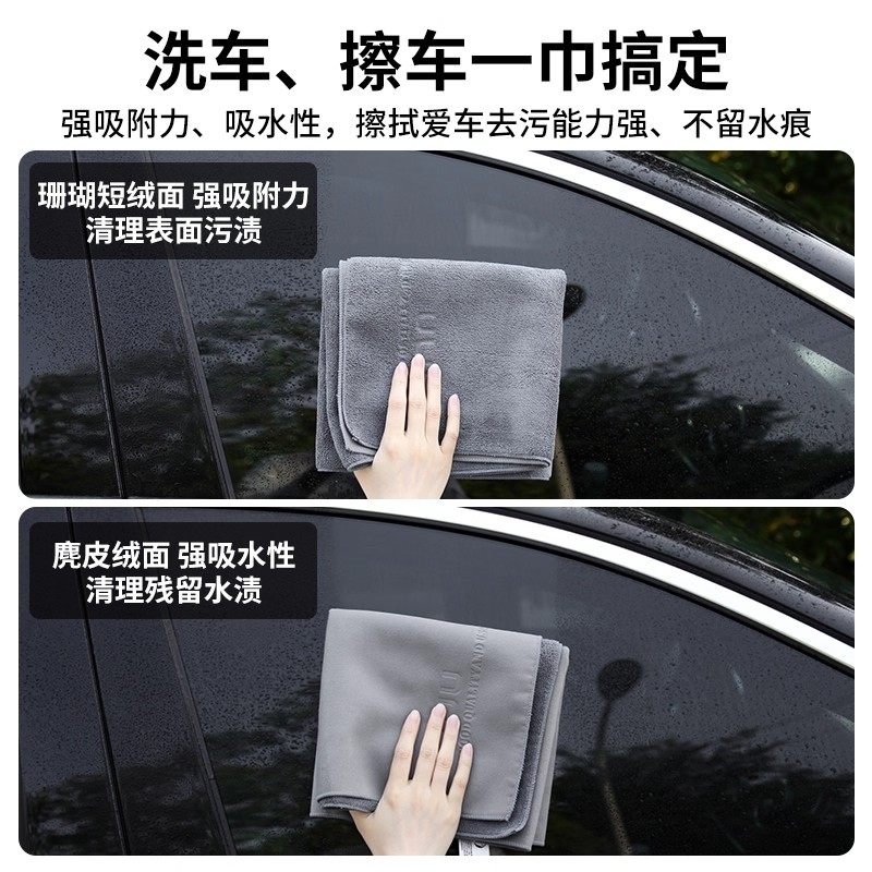 双面麂皮绒洗车毛巾擦车布吸水巾汽车用品大全车载内饰抹布不掉毛