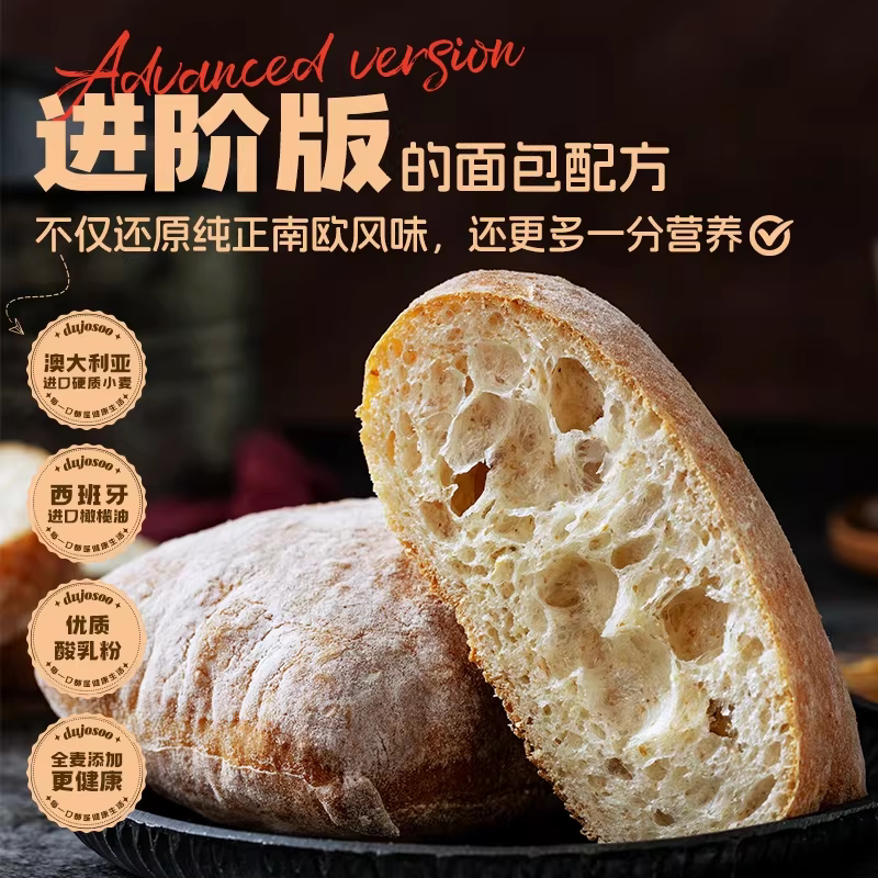 恰巴塔面包旗舰店全麦面包胚汉堡胚手作早餐健身代餐饱腹食品健康