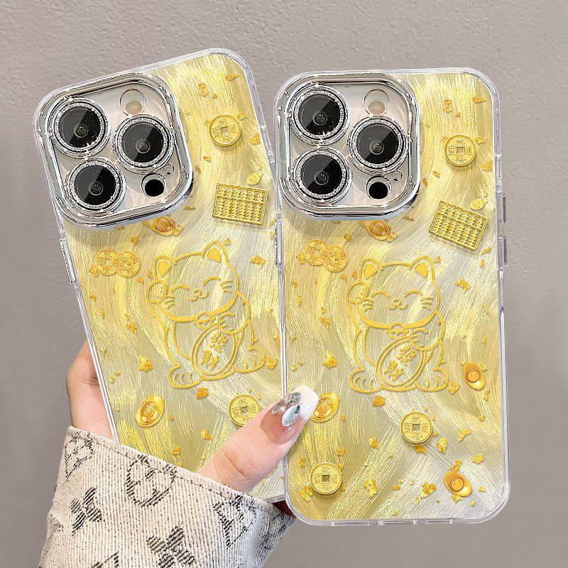 金箔招财猫适用苹果16手机壳iPhone15/11PROMAX新年款华为MATE70卡通NOVA13PRO立体公仔VIVOS19女RENO13红米