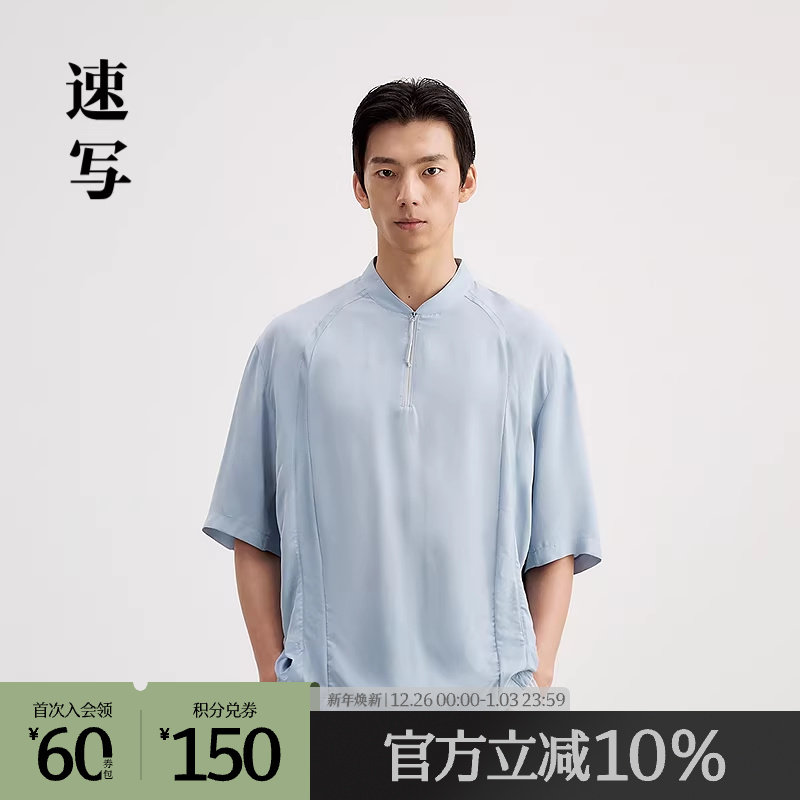 【商场同款】速写男装2025夏新品H型立领长款短袖T恤9P6112730