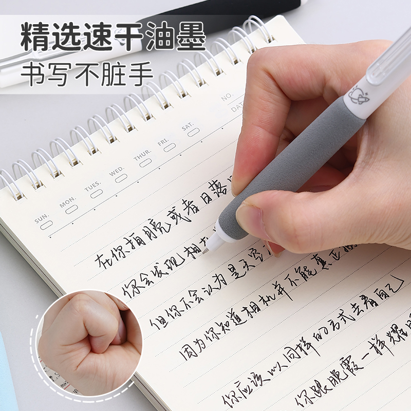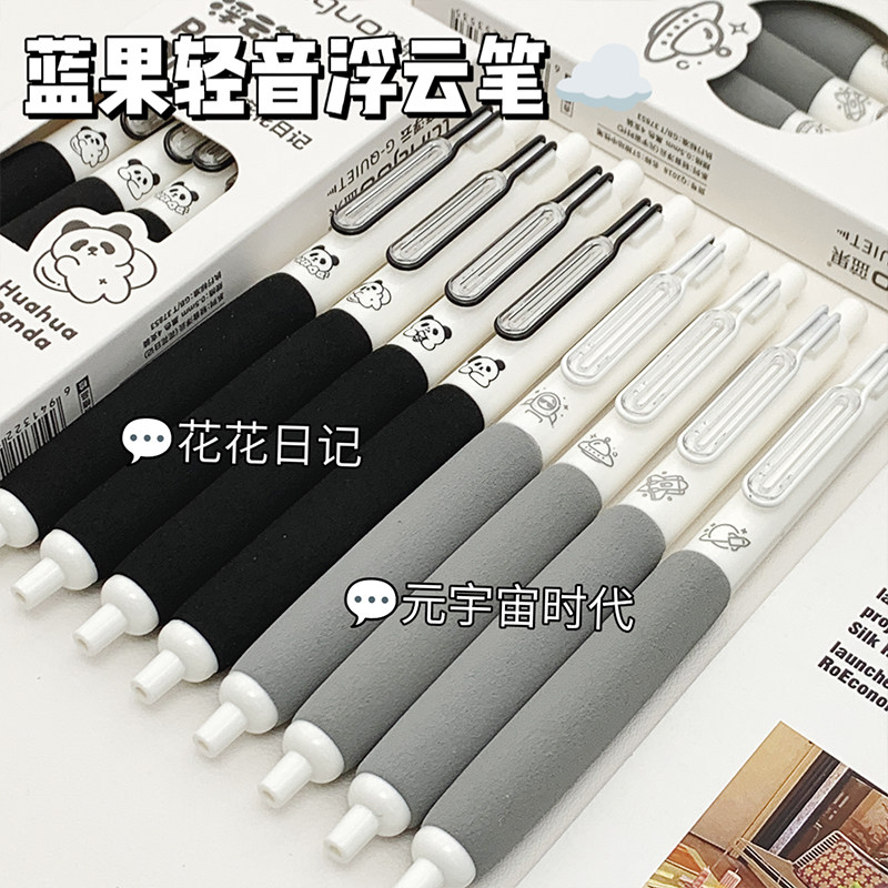 蓝果浮云笔轻音加长软握刷题笔静音国货熊猫花花中性笔速干ST头元宇宙时代黑笔0.5学生考试少女心不咯手文具