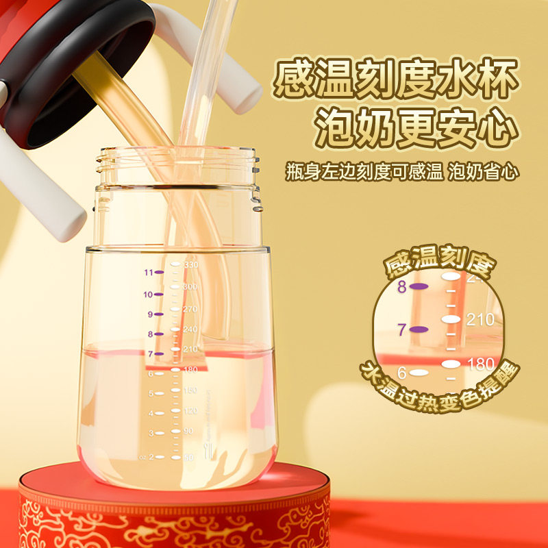 乐起保温吸管杯一岁以上宝宝奶瓶陶瓷覆层内胆幼儿外出防摔大容量