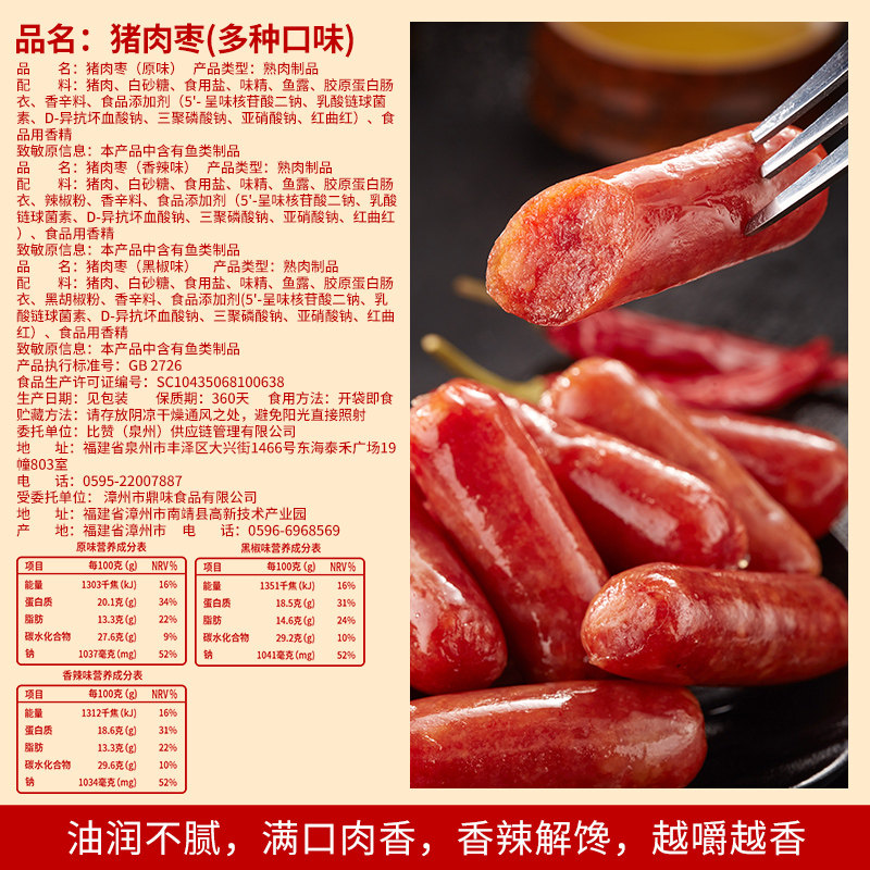 比比赞猪肉枣肉肠小香肠解饿小零食解馋小吃休闲即食品开袋即食