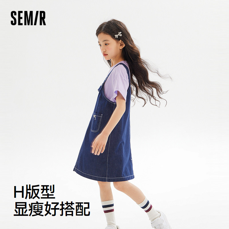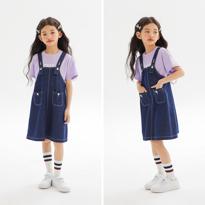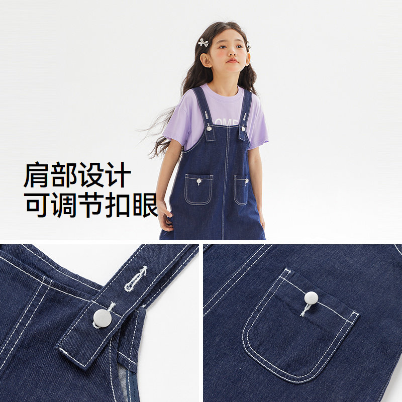 森马儿童背带裙女童开叉牛仔裙夏季连衣裙中长款裙子时尚百搭童装