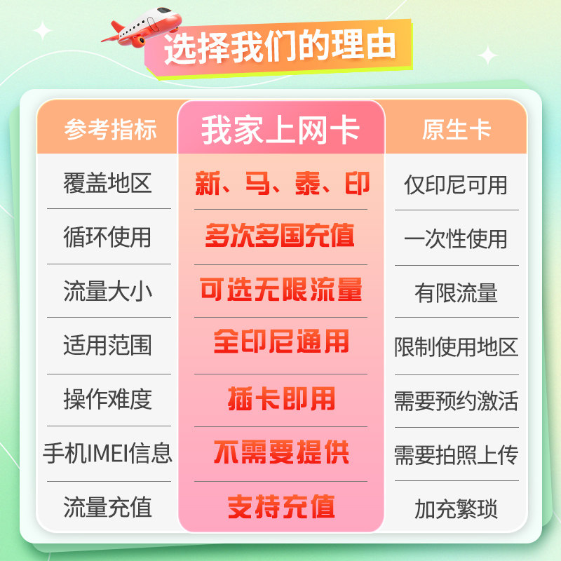 顺丰包邮~所有套餐均赠送转换插头!插卡即用,可选每天无限流量! 印尼巴厘岛TELKOMSEL运营商网络,支持热点! 印尼、新加坡、马来西亚、泰国四国旅游可一卡通用! 纯流量卡,支持充值续费,无通话短信功能! 去领券购买 ->