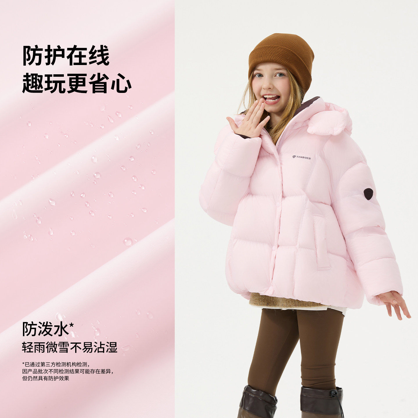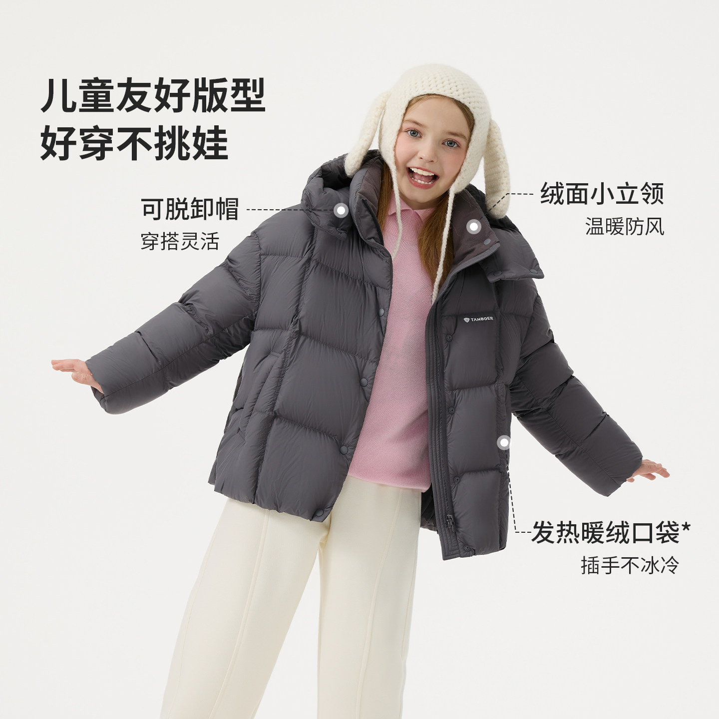 坦博尔25冬季新款儿童羽绒服短款女童装可脱卸帽耐脏面包服厚外套