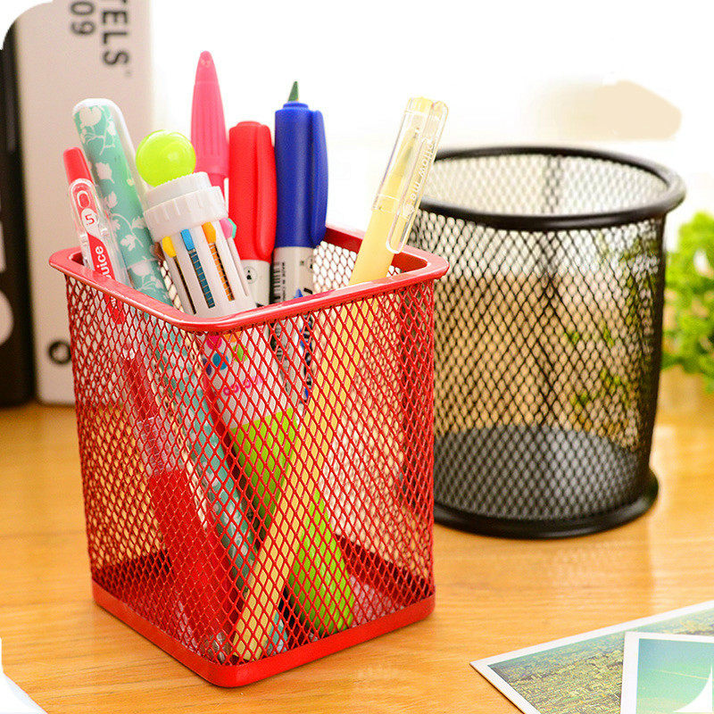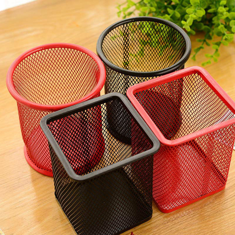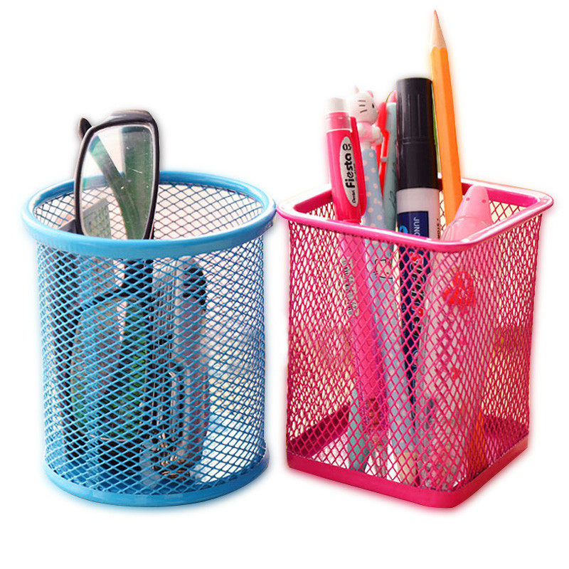 创意时尚镂空网格金属笔筒小清新桌面摆件初中生韩国多功能圆型桶