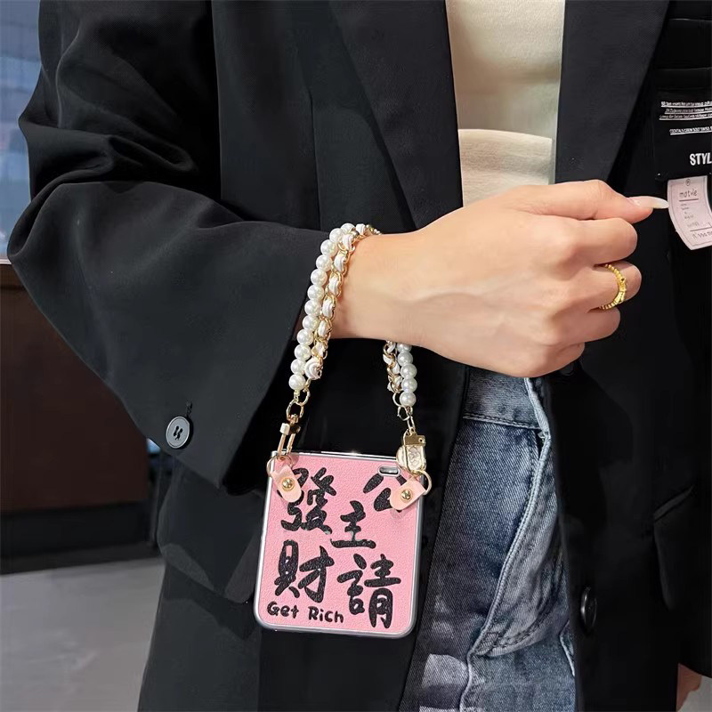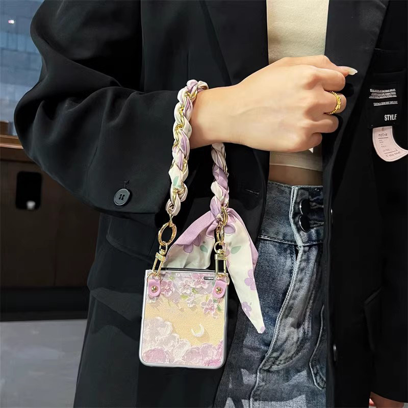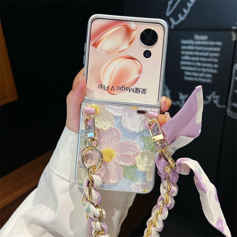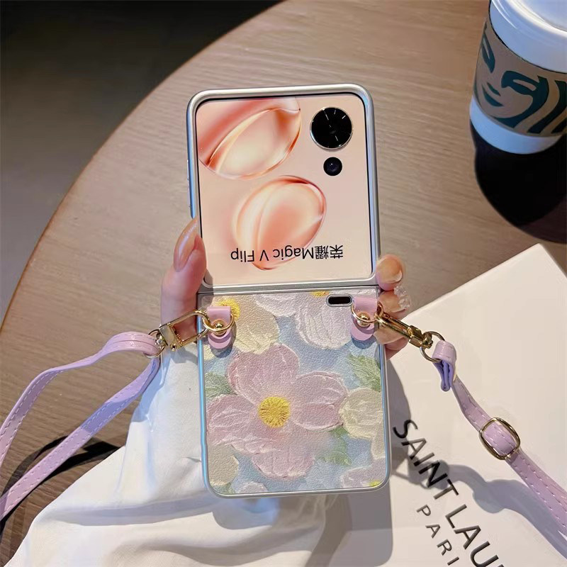 适用荣耀magicvflip折叠屏手机壳斜挎挂绳三星GalaxyZF lip6高档油画翻盖pocket2丝巾手提防摔novaflip保护套