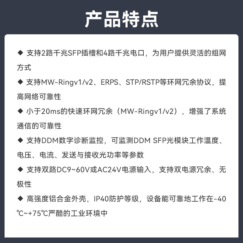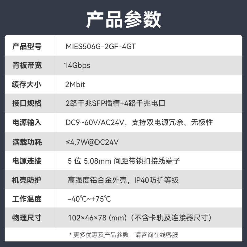 【迈威】6口千兆环网交换机2光4电工业级交换机网管型工业以太网交换机 光纤光电交换机 MIES506G-2GF-4GT
