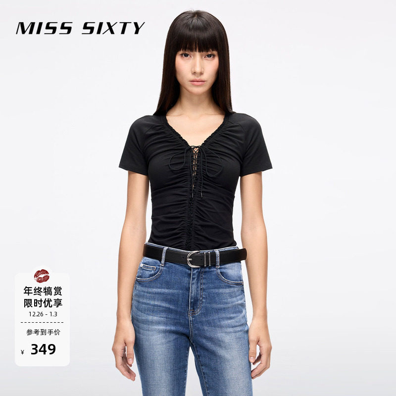 [修身]Miss Sixty2025夏款短袖T恤系带镂空花边短款设计感上衣