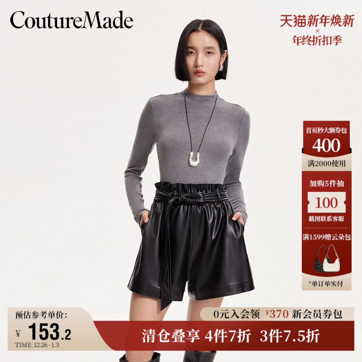 Vero Moda奥莱短裤女秋冬新款PU褶皱阔腿宽松收腰系带时尚流行