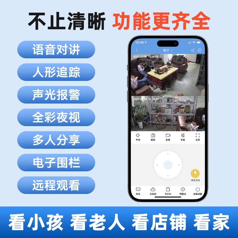 奥克斯监控摄像头家庭用手机远程无需网络室内监控器360度无死角