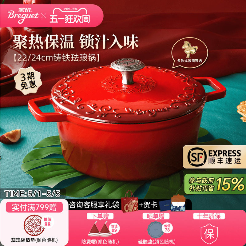 Breguet宝玑红色珐琅锅家用新婚乔迁礼物铸铁炖锅电磁炉燃气通用