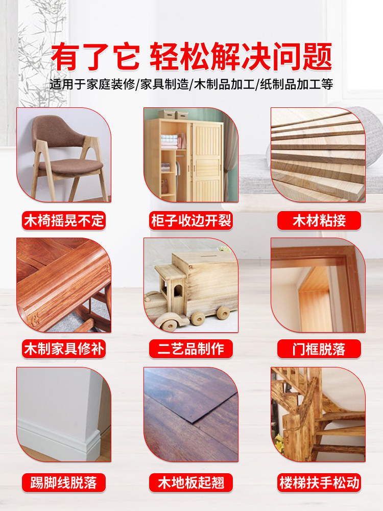 木工胶粘木头胶水强力万能专用胶开裂修复填充红木家具木板实木椅子凳子桌子门边木地板用的白乳胶快干粘合剂
