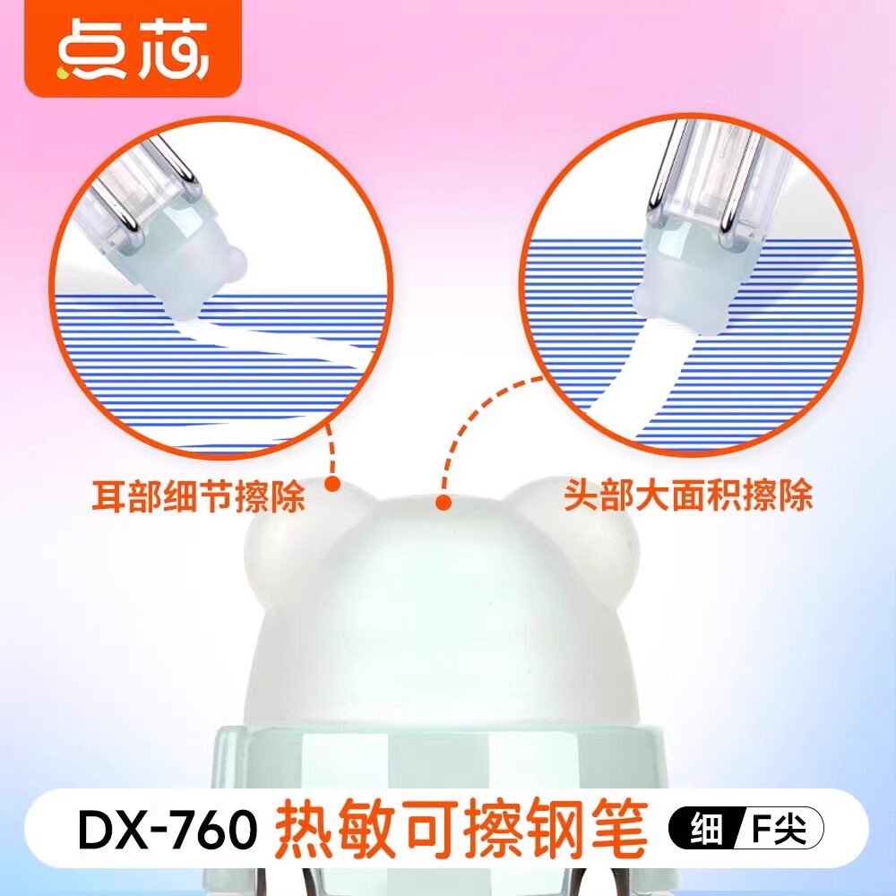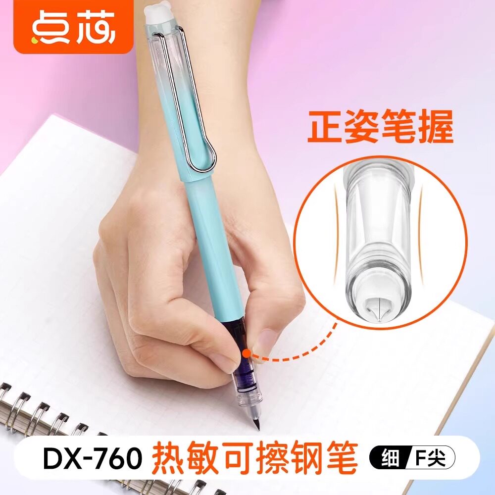 点石点芯热敏可擦钢笔DX760三年级小学生F细尖热可擦晶蓝正姿钢笔