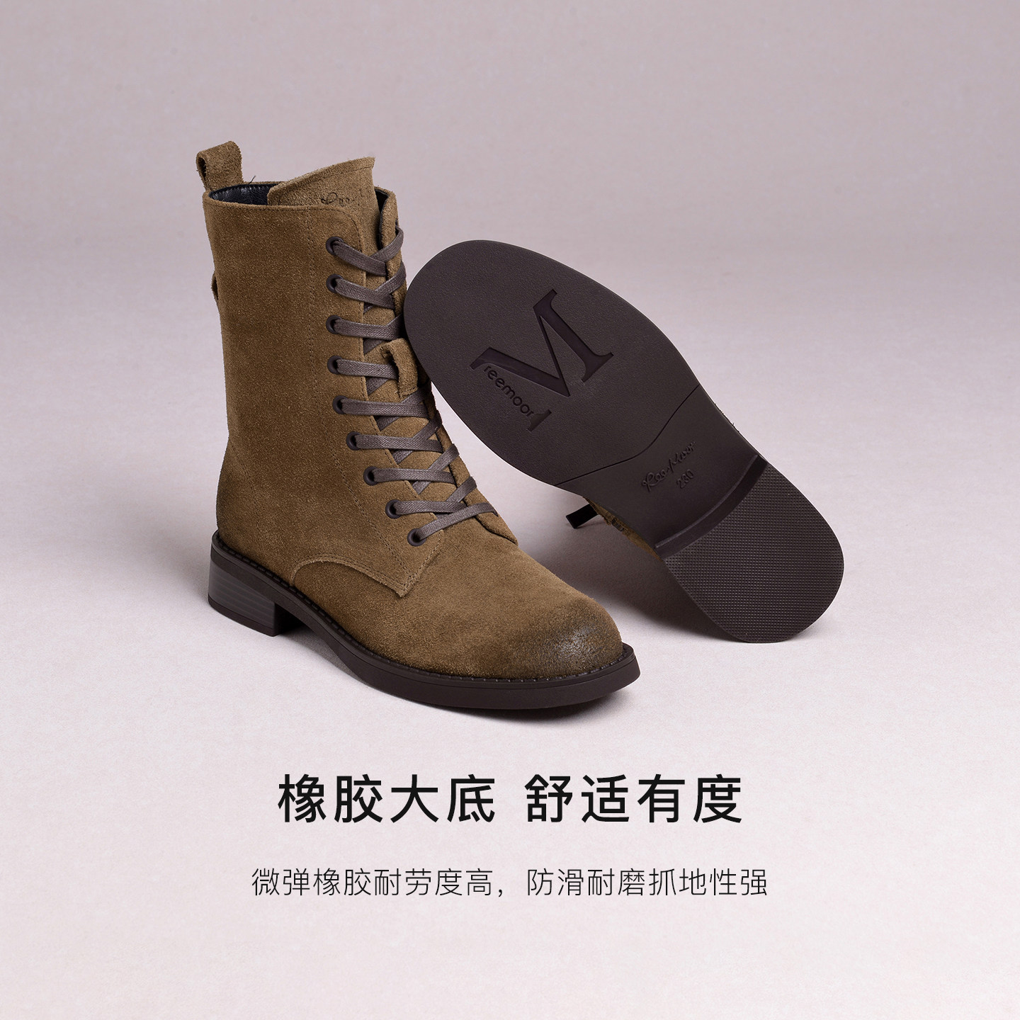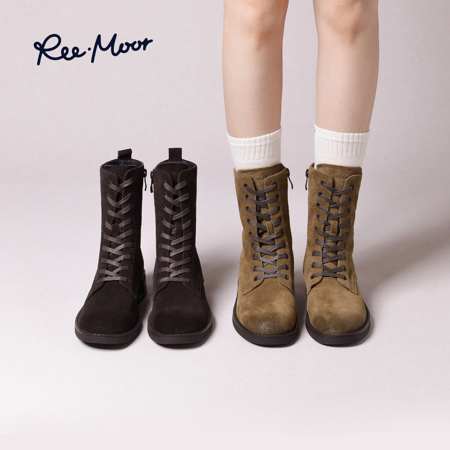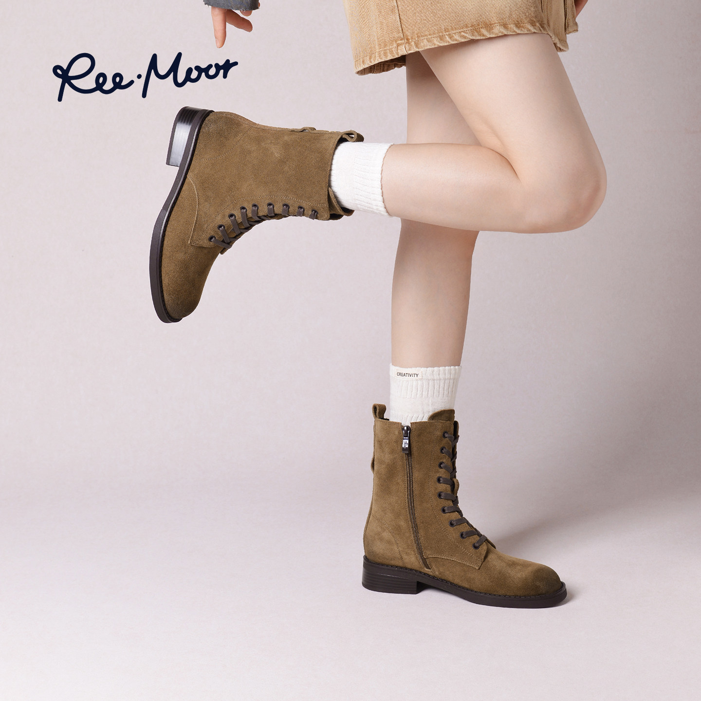 REEMOOR睿慕2025冬季新款英伦风马丁靴女系带粗跟工装靴百搭短靴