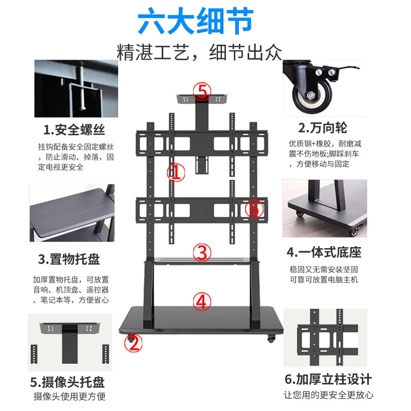 双屏电视机落地支架可移动式左右上下2屏四屏通用挂架带轮推车