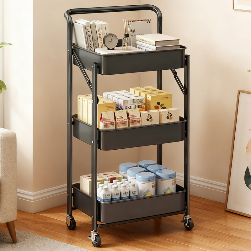 小推车置物架厨房浴室可移动多层玩具零食收纳架折叠免安装杂物