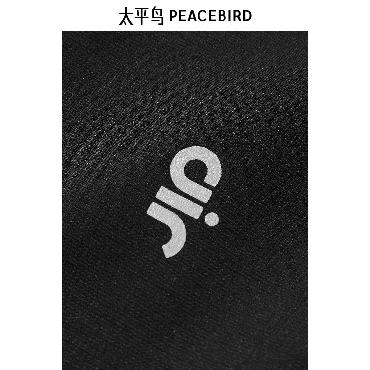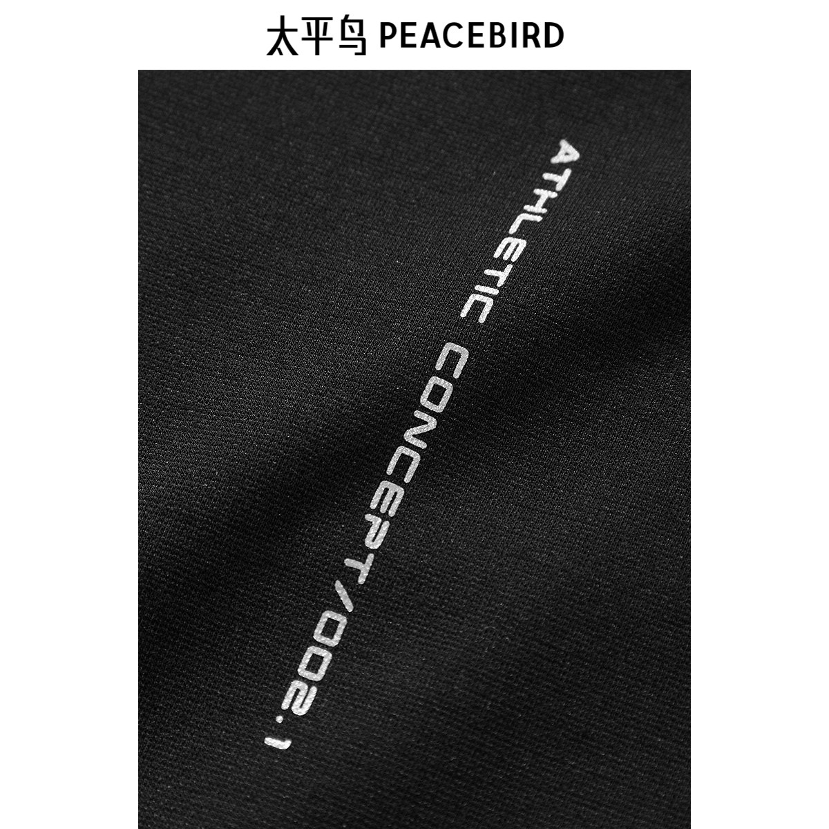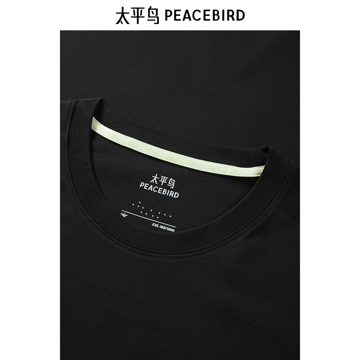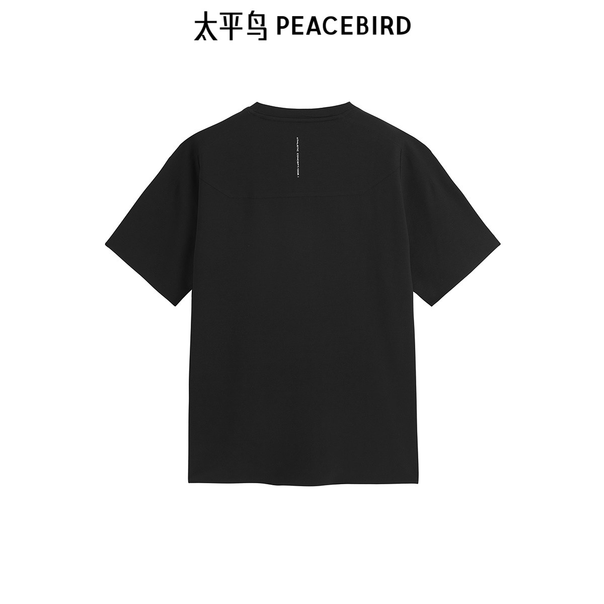 太平鸟男装 圆领运动短袖T恤秋季直筒黑色青年休闲体恤男