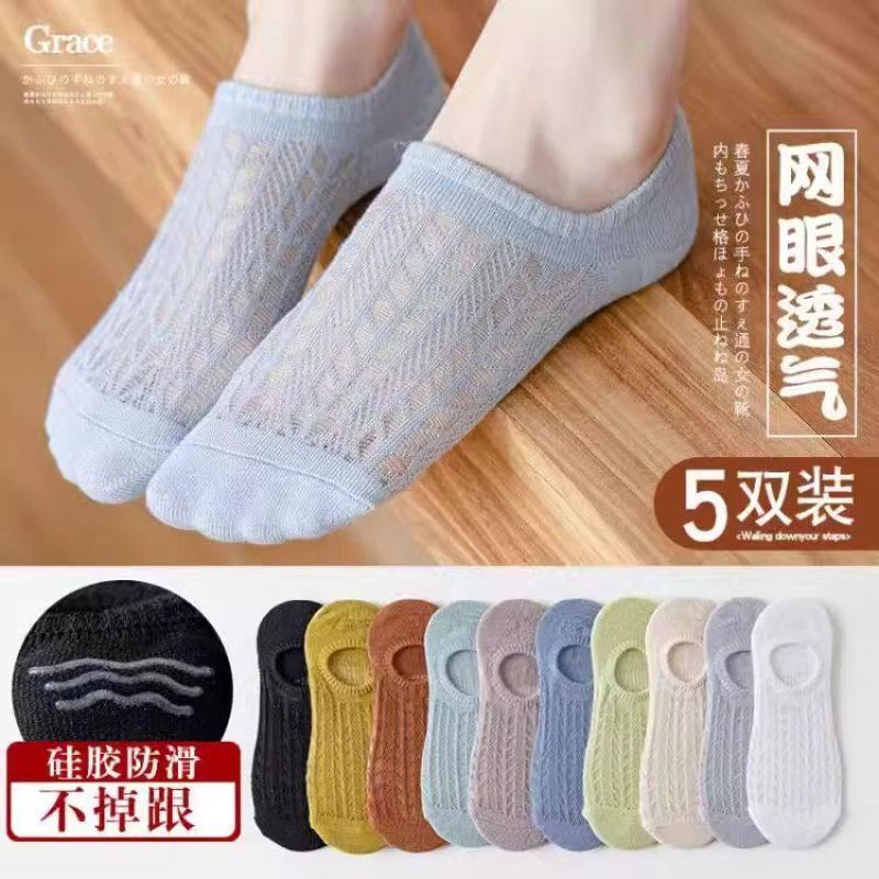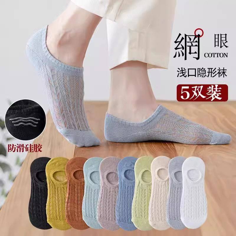袜子女夏季薄款网眼船袜洞洞袜弹力卡丝隐形短袜防滑超薄不掉跟
