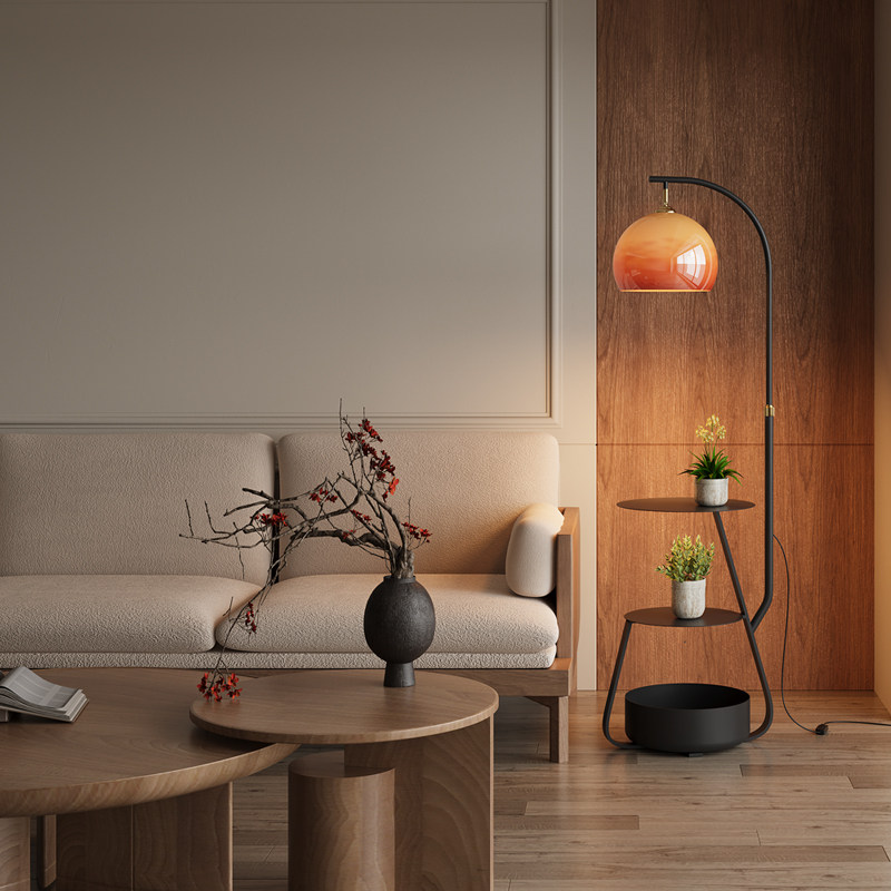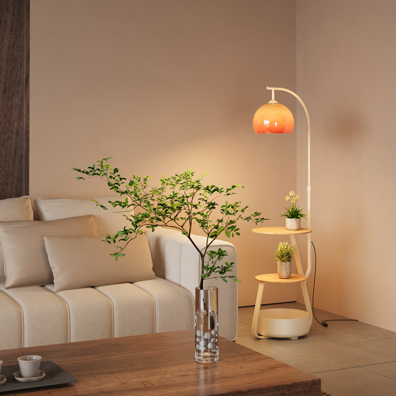 中古风置物架落地灯客厅沙发边茶几立式台灯卧室床头氛围柚子灯