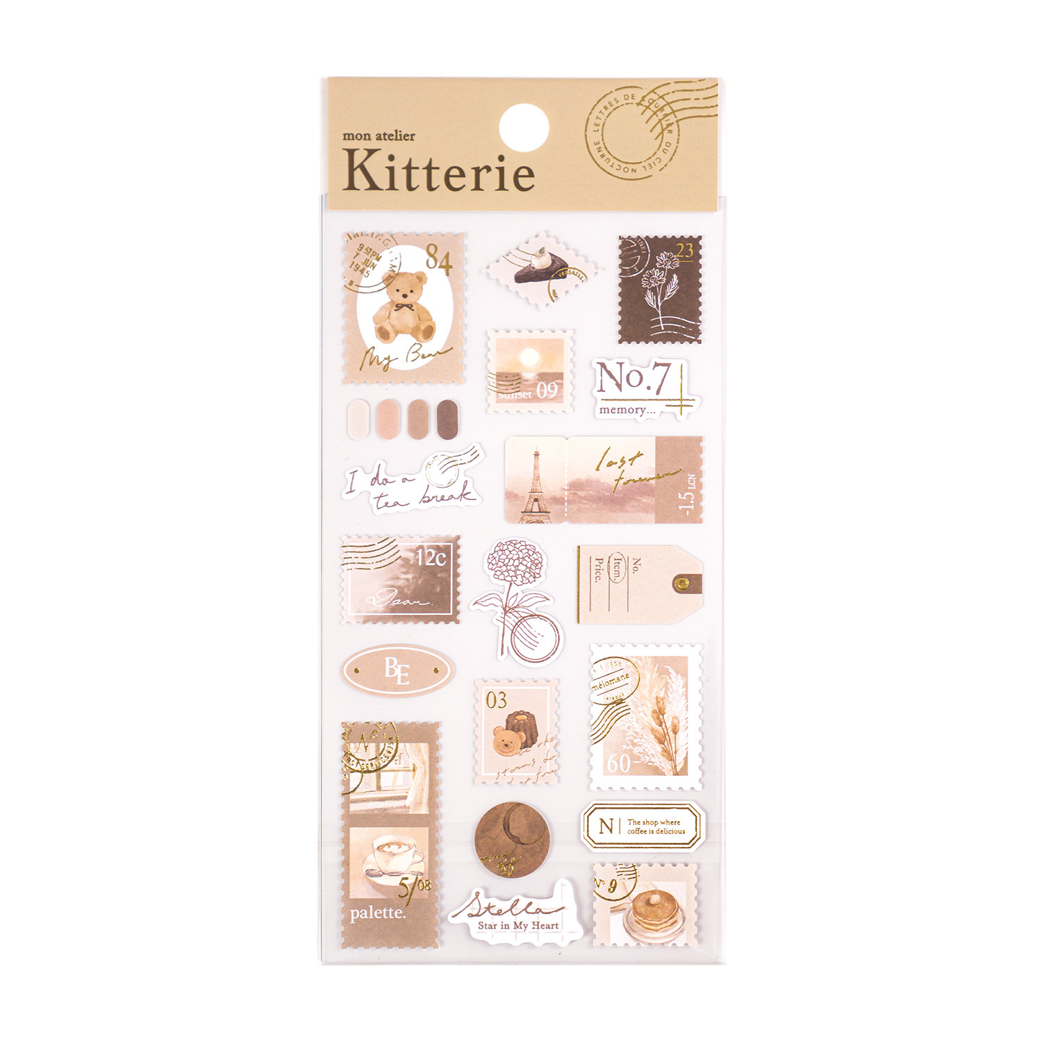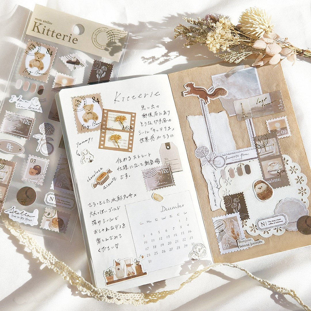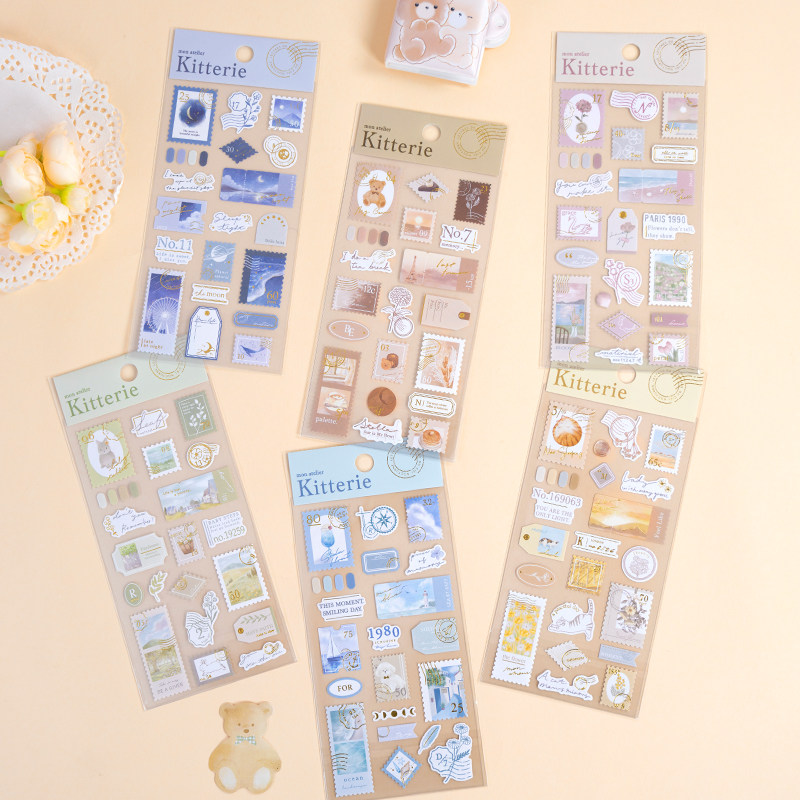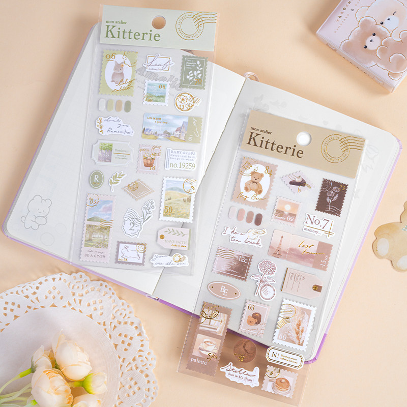 Kitterie金箔邮票纸质贴纸日系手账贴画悠闲旅行生活咖啡花卉纪念