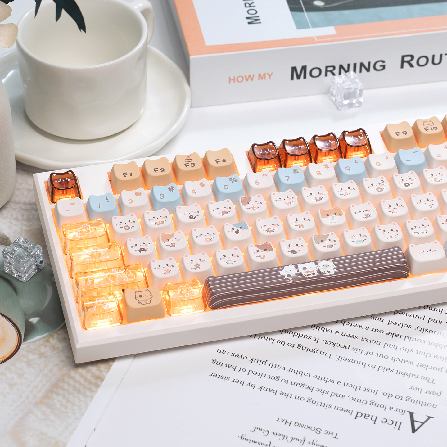 漫步猫z108机械键盘有线无线蓝牙女生办公静音麻将音可爱