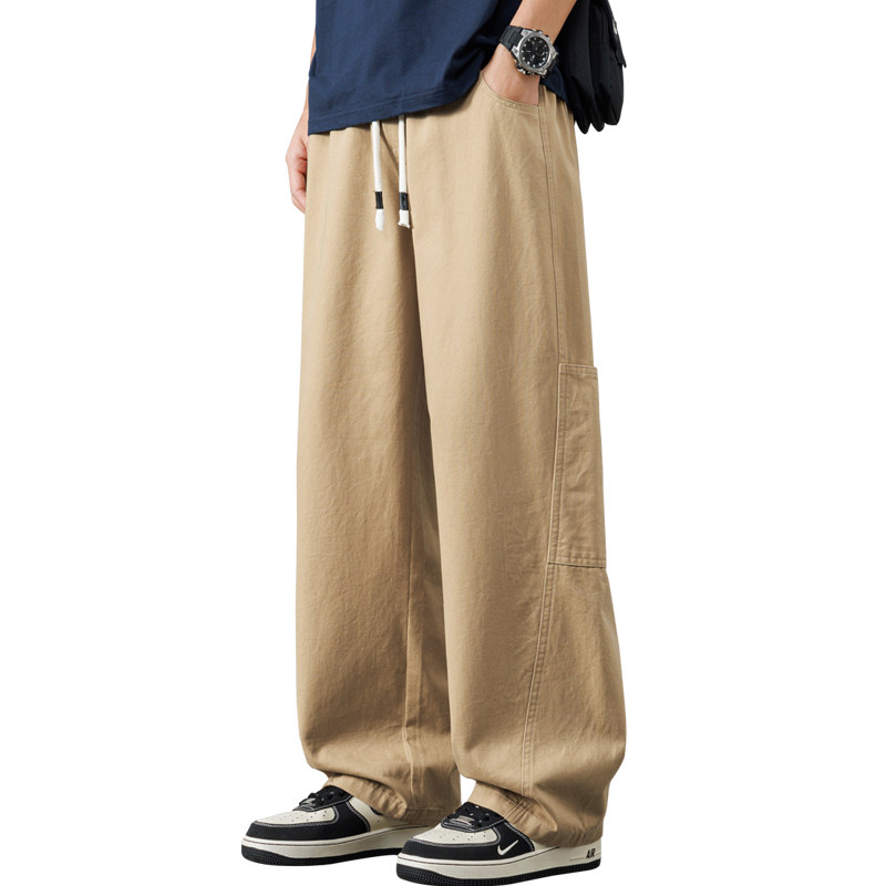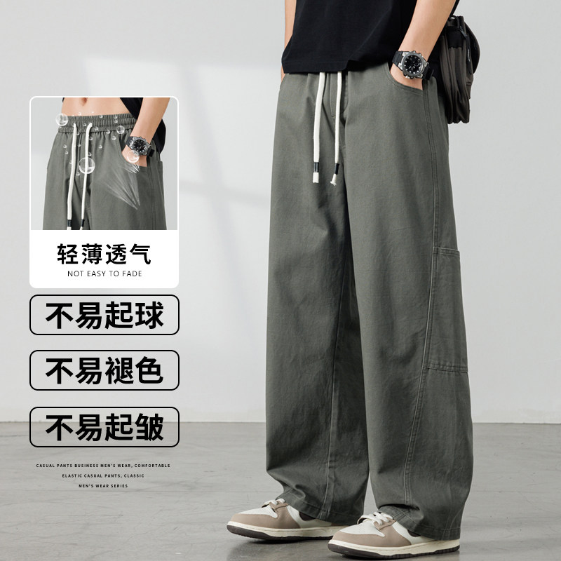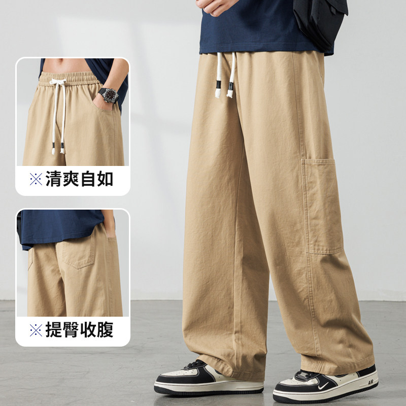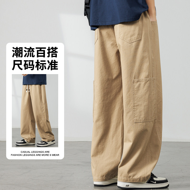 罗蒙工装纯棉阔腿裤男春夏季宽松直筒休闲裤2026新款潮流裤子男款