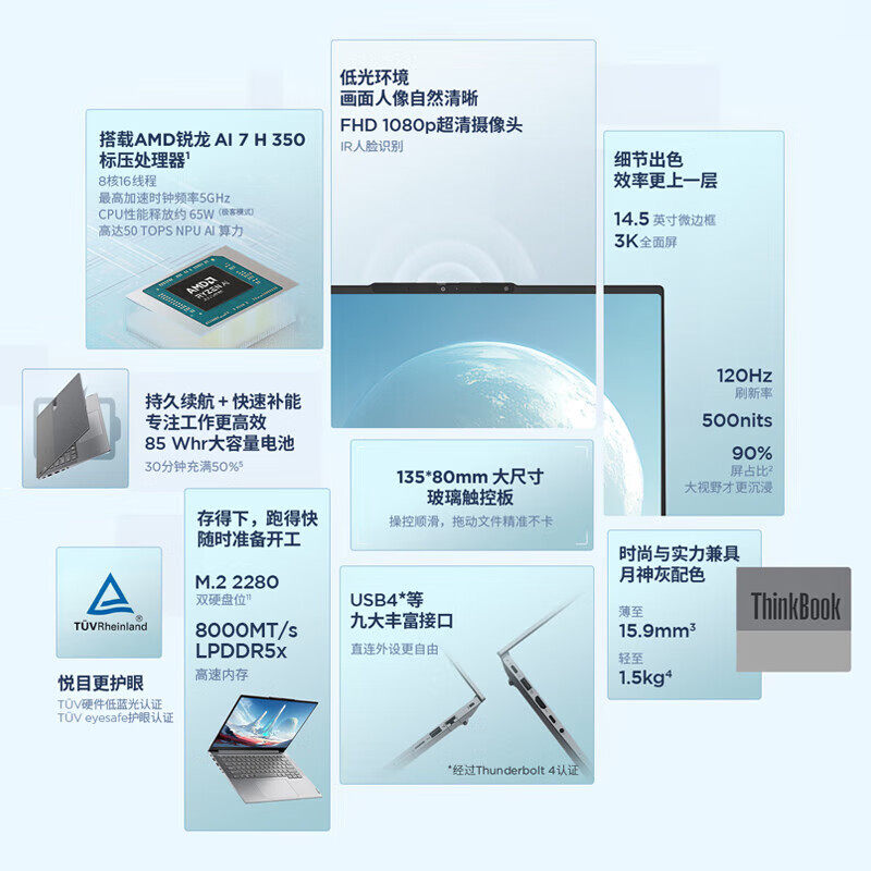 【政府补贴】联想ThinkBook 14+/16+ 新款锐龙AMD AI全能本轻薄便捷商务学习游戏ThinkPad笔记本电脑官方