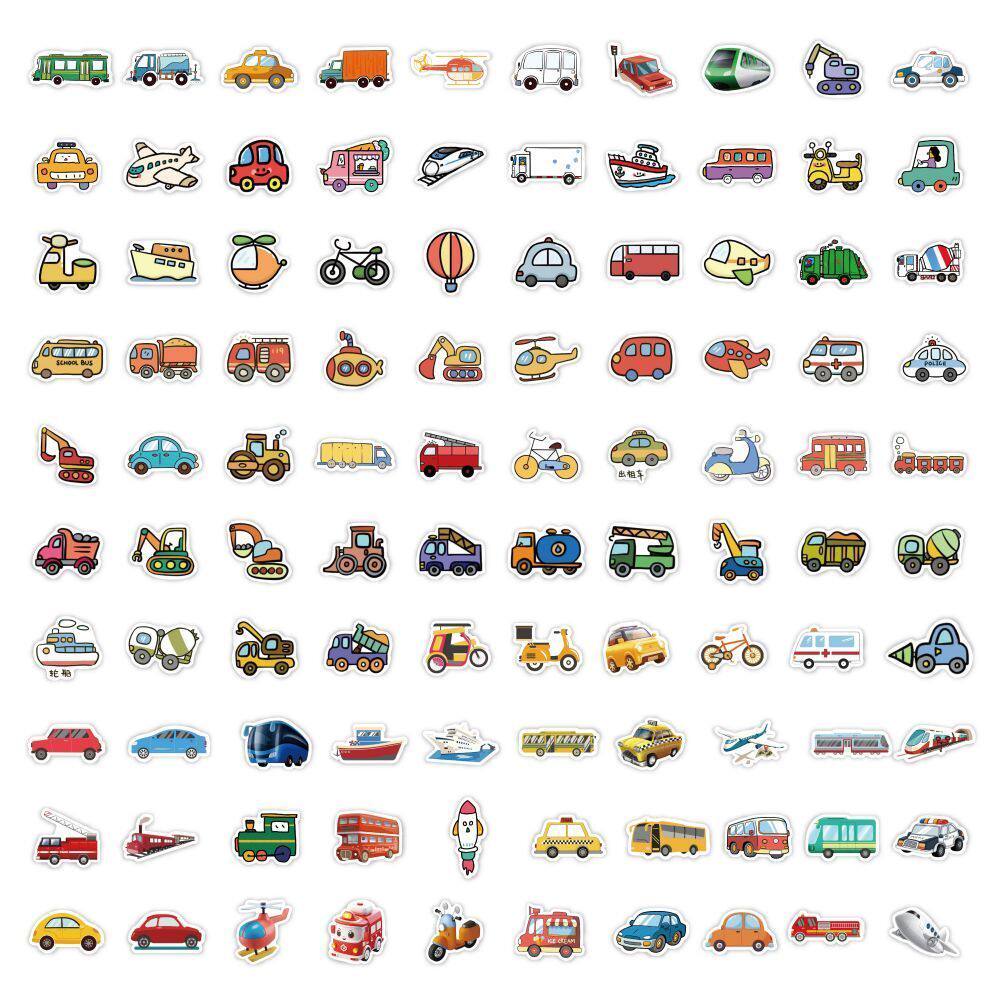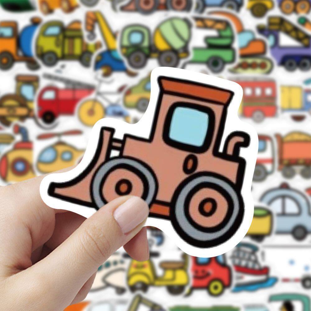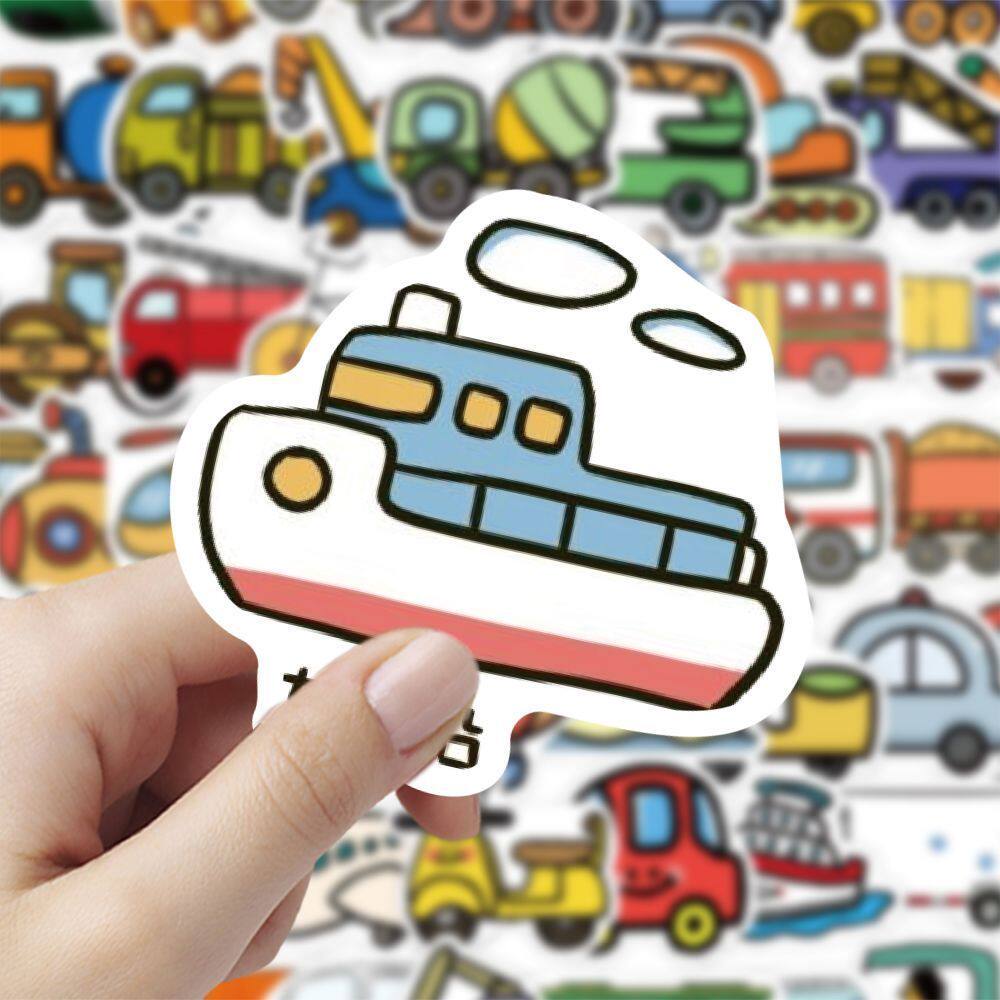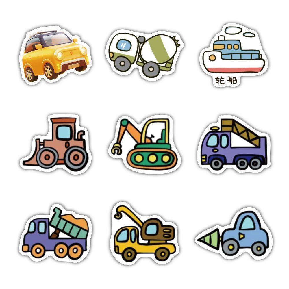 【大图释官方授权】240贴交通工具贴纸卡通汽车轮船消防车飞机铲车水泥罐车儿童玩具装饰手账DIY防水素材贴画