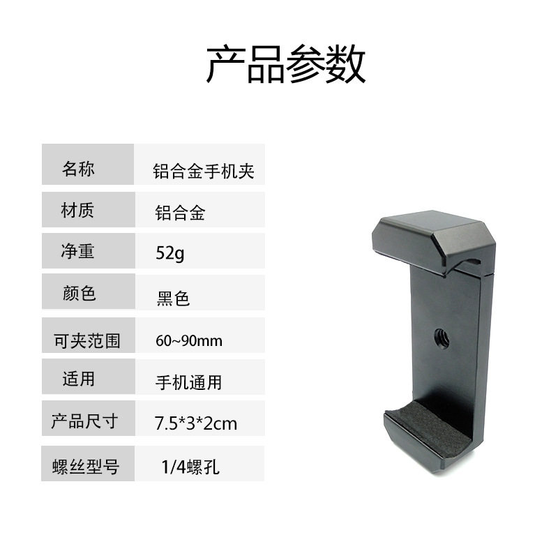 补光灯可调节热靴手机夹通用自拍杆一字夹E字拉伸金属夹手机直播配件金属夹子自拍杆配件