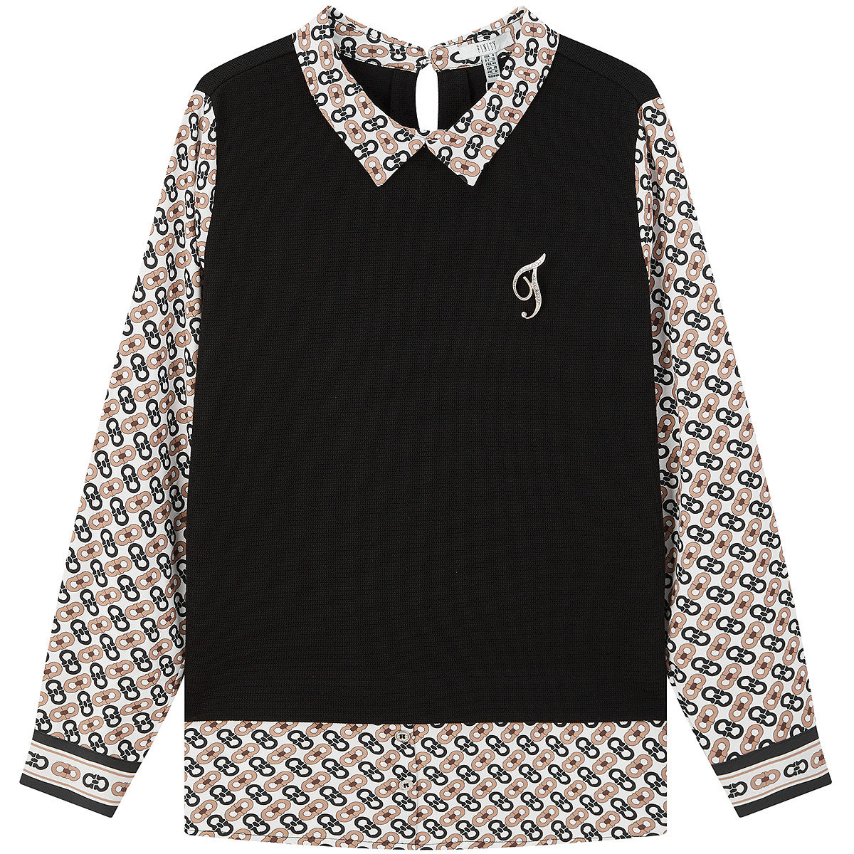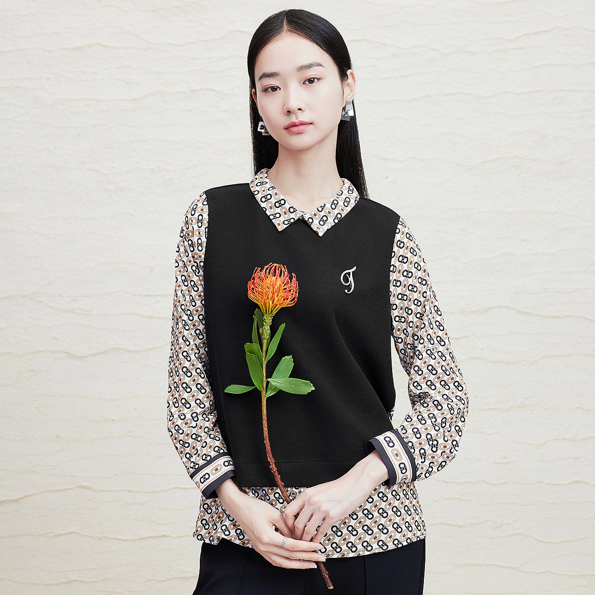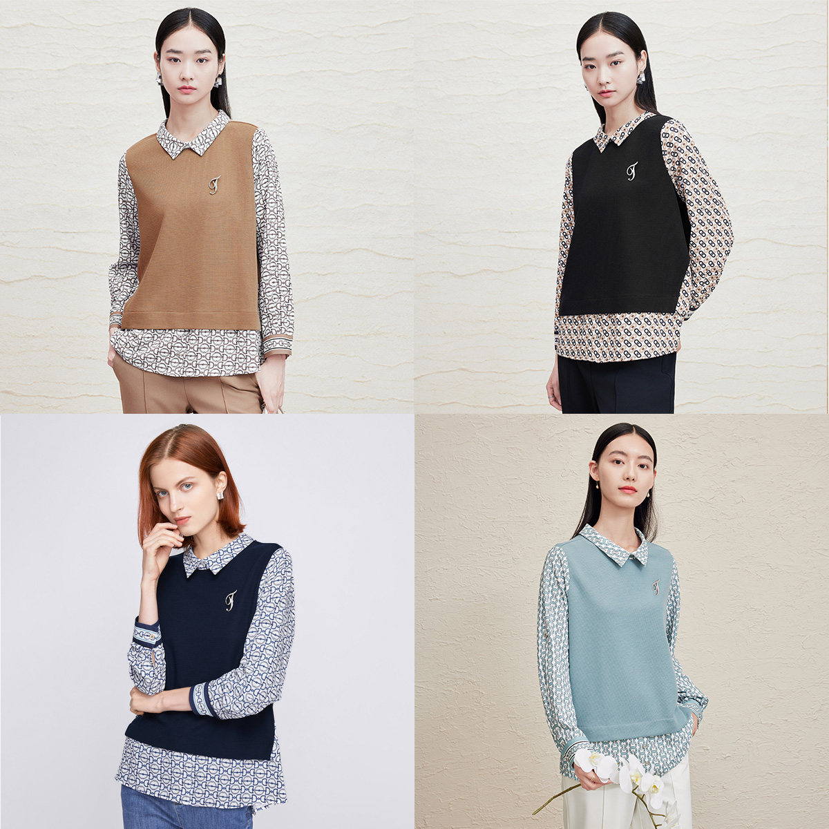 FINITY菲妮迪假两件雪纺衫2026春季新款衬衫领设计感拼接上衣女