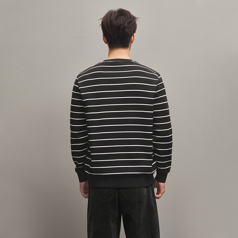 马登工装美式复古竖条纹亨利领毛衣宽松加厚黑色打底针织衫男秋冬