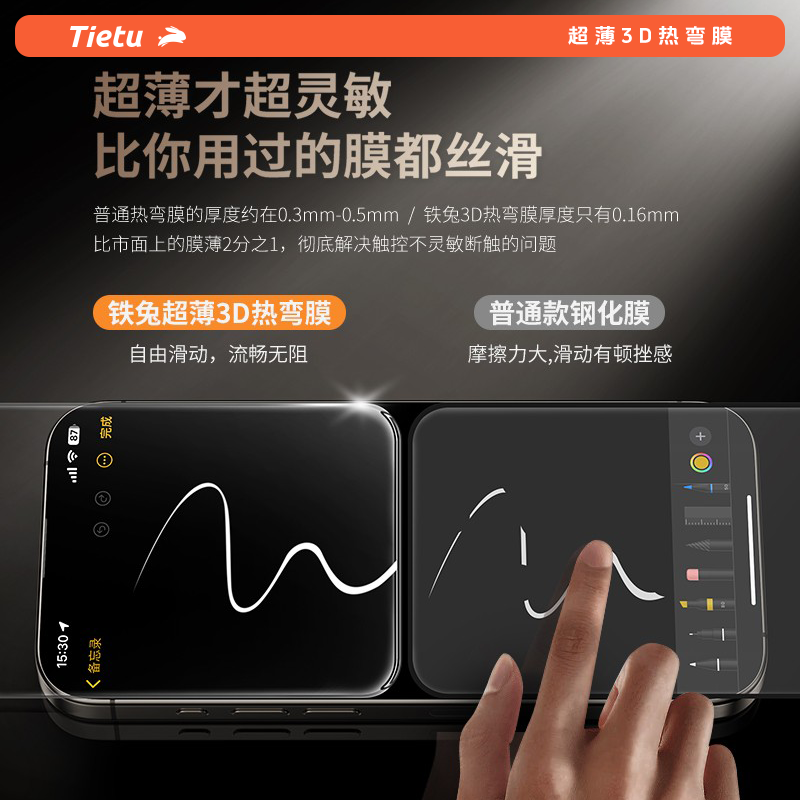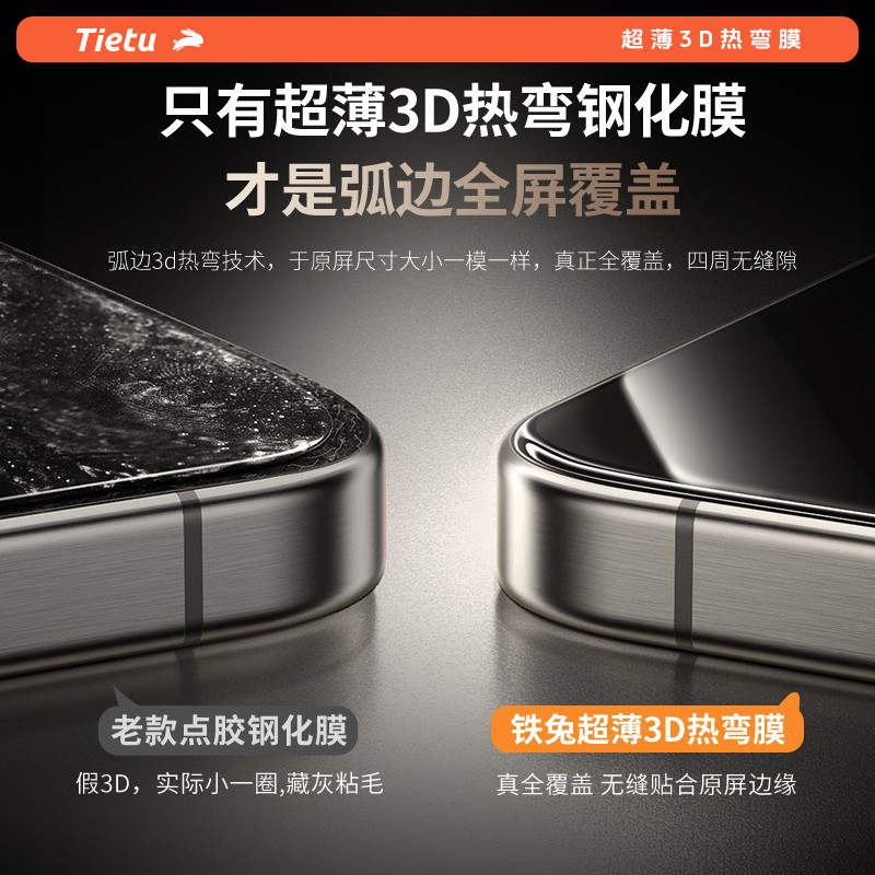 铁兔零感膜适用苹果17promax【3D热弯钢化膜】iphone16promax手机贴膜超薄15plus全屏幕覆盖增透保护膜高清pm