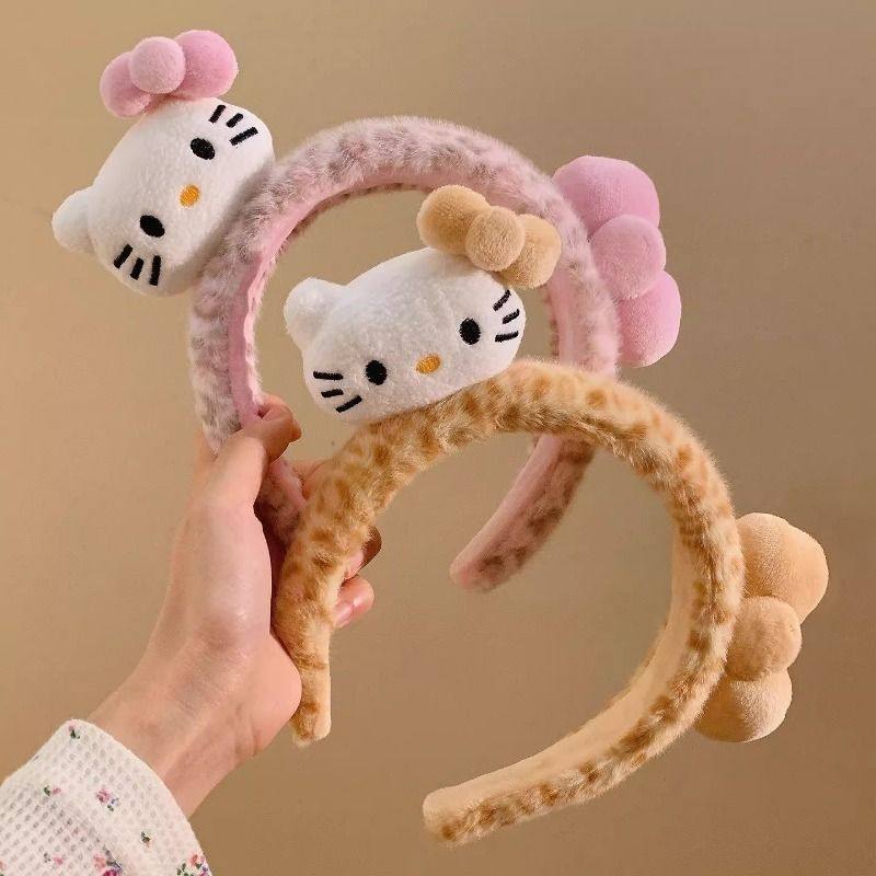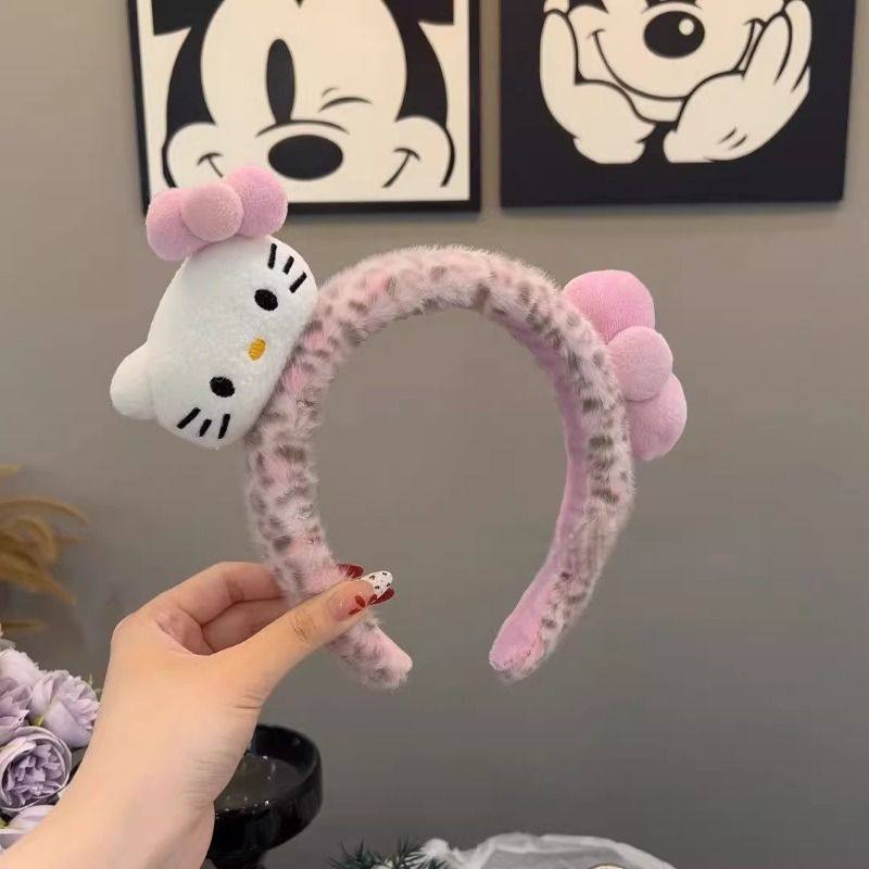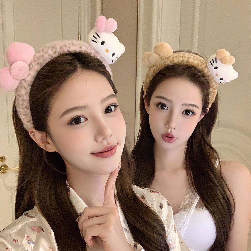 甜美粉色豹纹kt猫蝴蝶结发箍2025新款少女风高颅顶洗脸防滑头箍