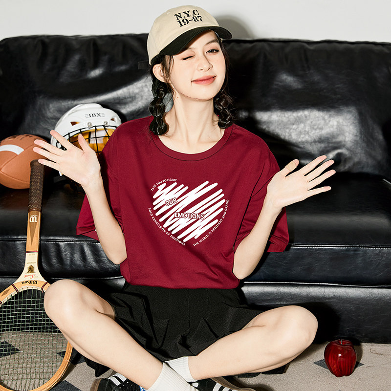 新国货100纯棉t恤女130支双面丝光棉短袖V圆领宽松大码夏季鸡心领