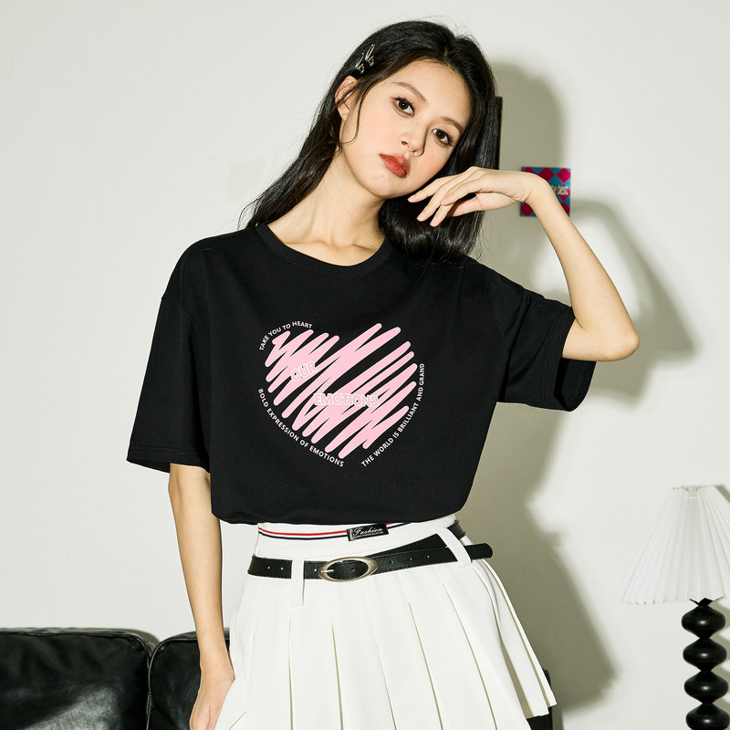 唐狮短袖T恤女宽松夏季新款设计感小众印花体恤纯棉白色上衣TA