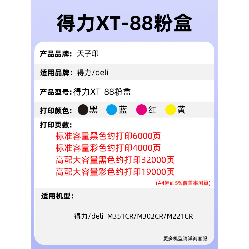适用得力xt88粉盒m221c m302cr m351cr 221cr m221cr硒鼓m302墨粉
