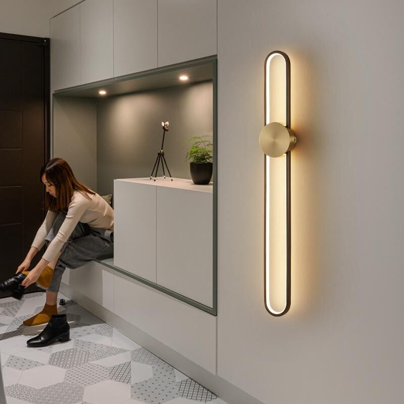 全铜长条壁灯轻奢客厅背景墙卧室床头灯设计师极简创意楼梯过道灯