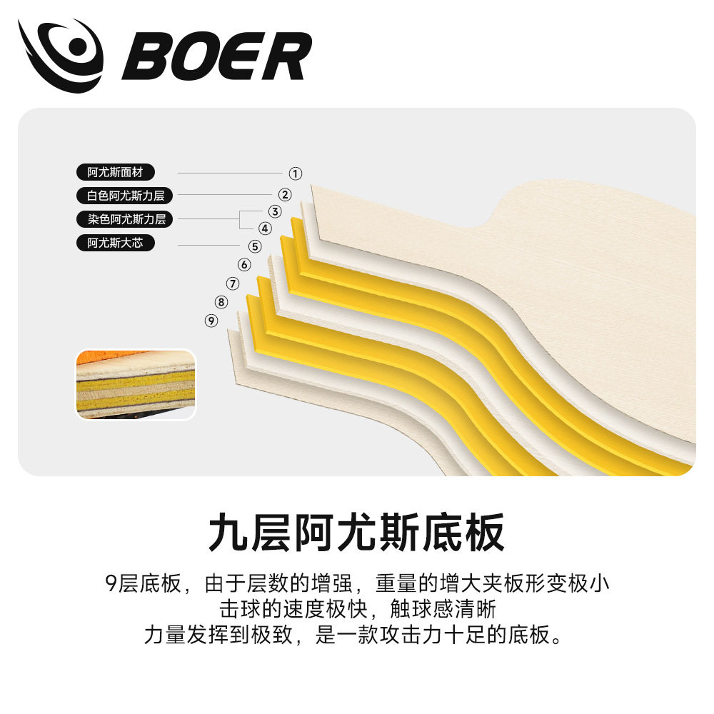 Boer/波尔S8乒乓球拍九层阿尤斯木反胶横拍直拍单拍专业比赛拍子