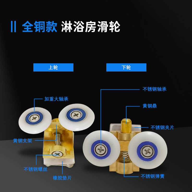 圆弧形淋浴房滑轮浴室玻璃推拉移门老式滚轮配件轨道吊轮上下轮子