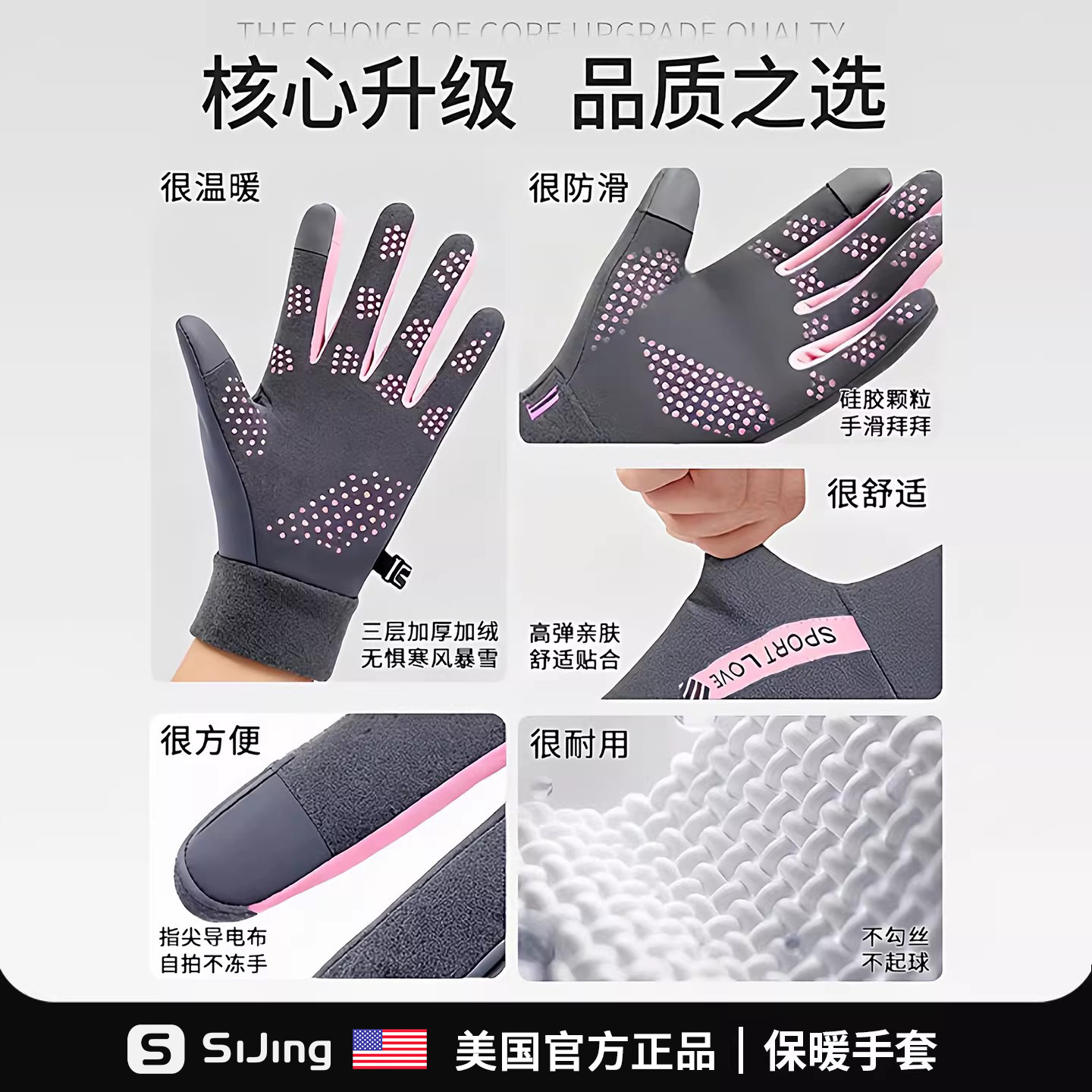 棉滑雪手套男女冬季防水触屏跑步运动骑行登山装备加绒厚保暖防风