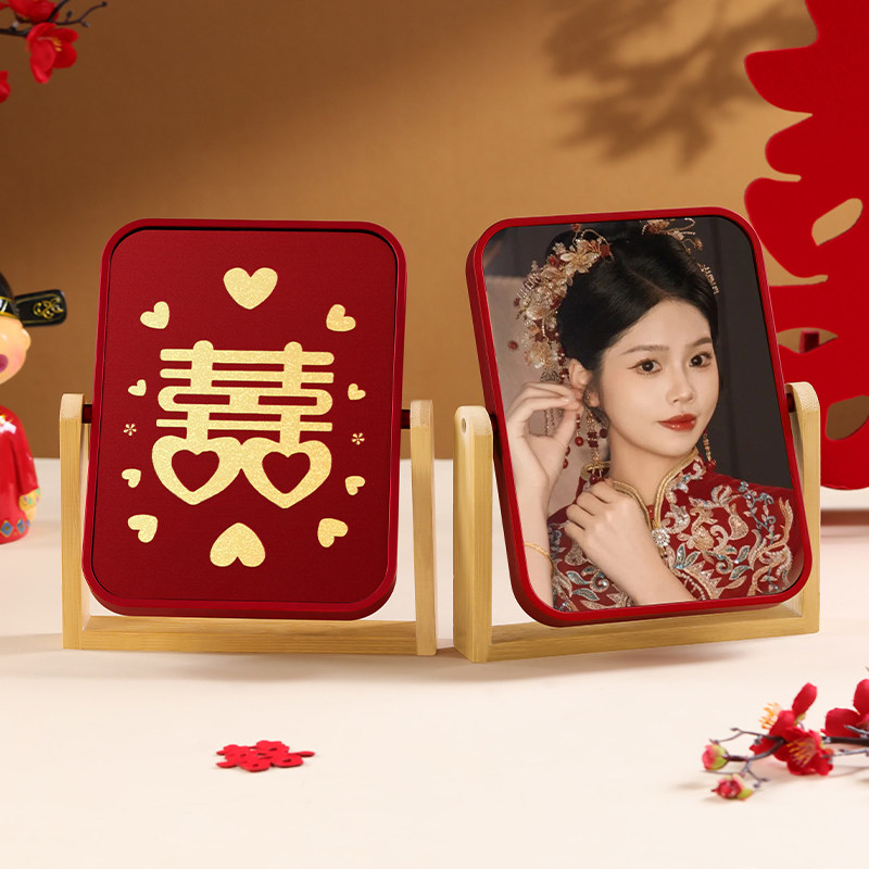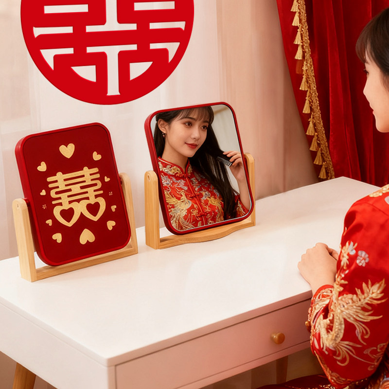 结婚新娘红色梳妆喜镜婚礼镜子梳子一对套装新婚女方陪嫁用品大全