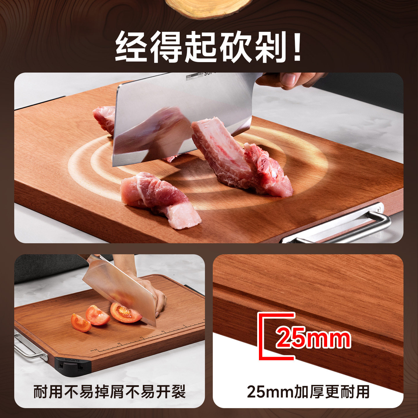 苏泊尔菜板切菜板双面砧板花梨木整木案板厨房专用和面板水果粘板