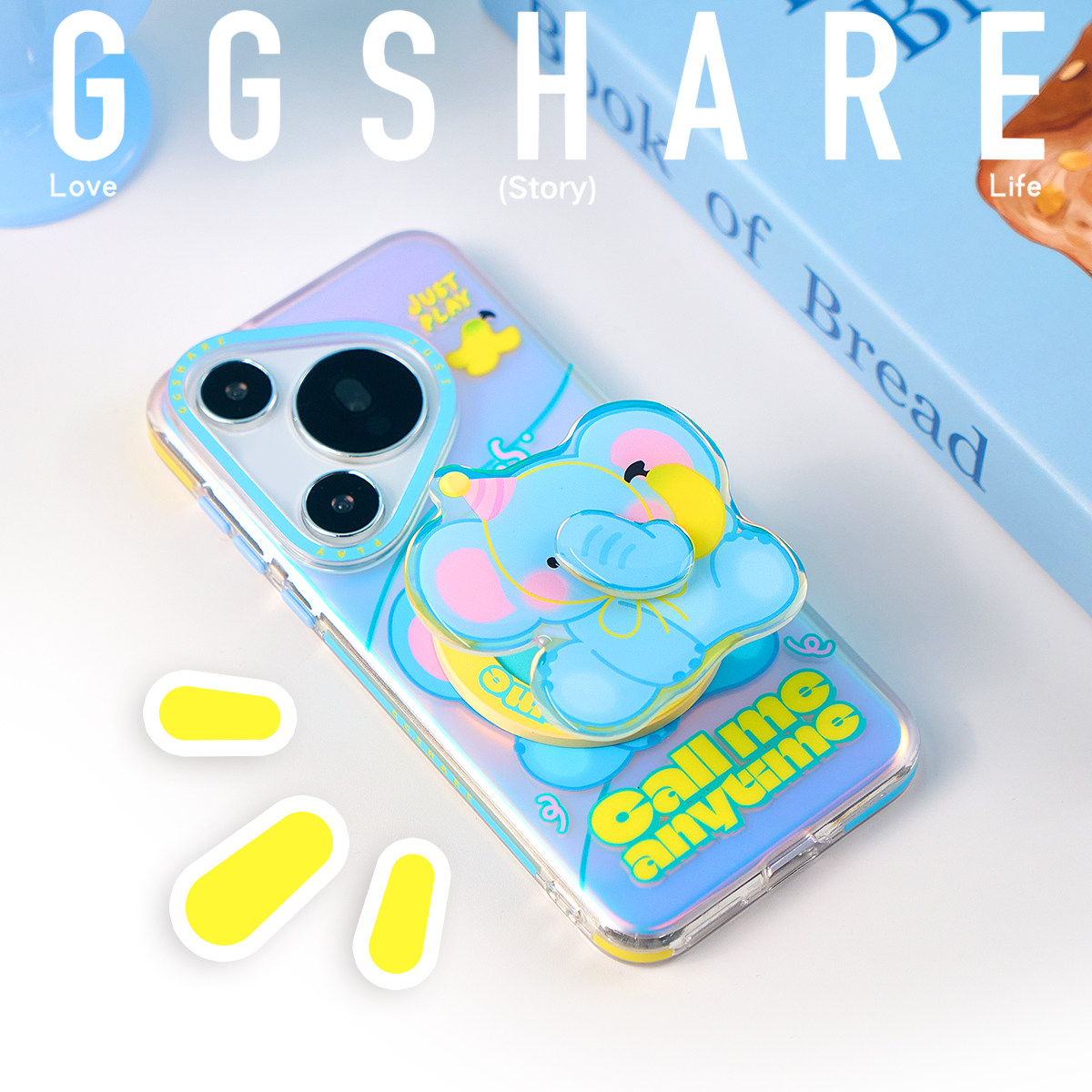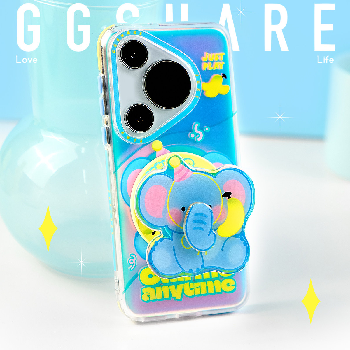 GGSHARE寄居蟹原创大象适用华为mate70pro手机壳带磁吸支架 新款pura80Ultra手机套保护壳双层磨砂防丢手腕绳