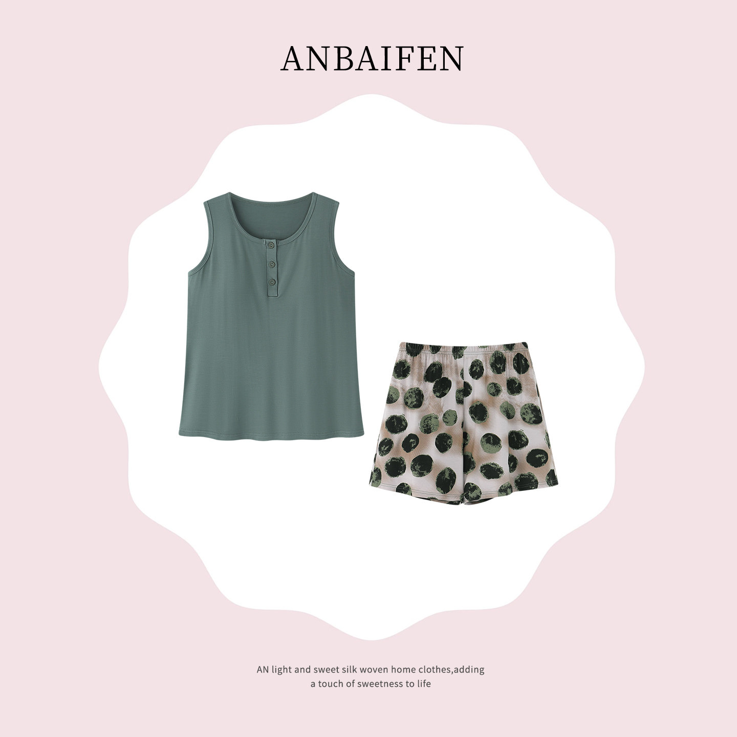 末里末【带胸垫】夏季凉感无袖背心情侣睡衣简约宽松家居服男套装