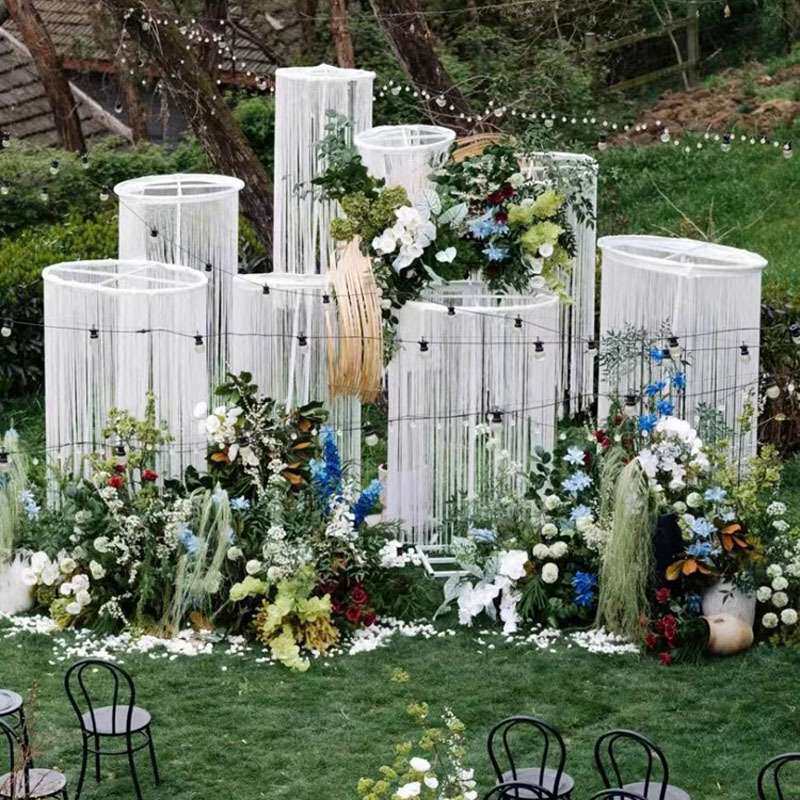 新款婚庆道具线帘圆环吊环架子圆形铁艺花环路引珠帘装饰立杆伸缩