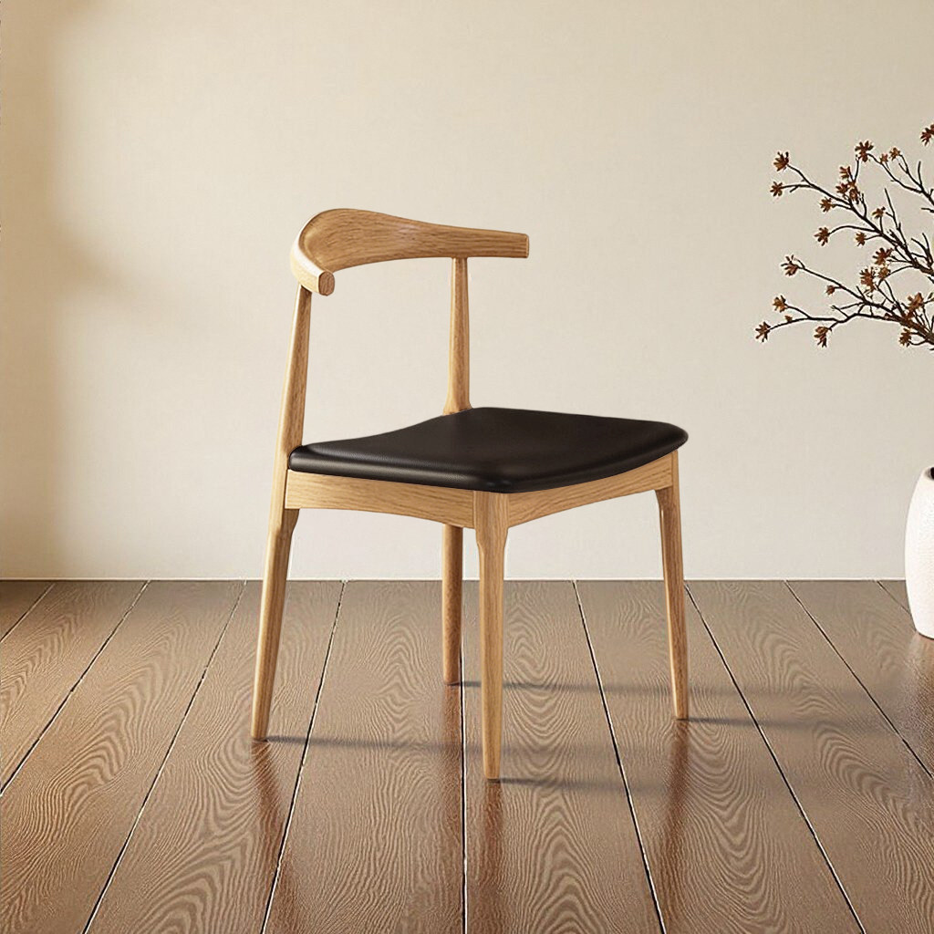轻奢侘寂风餐椅皮软包设计师现代弯曲木咖啡厅实木椅子家用书房椅