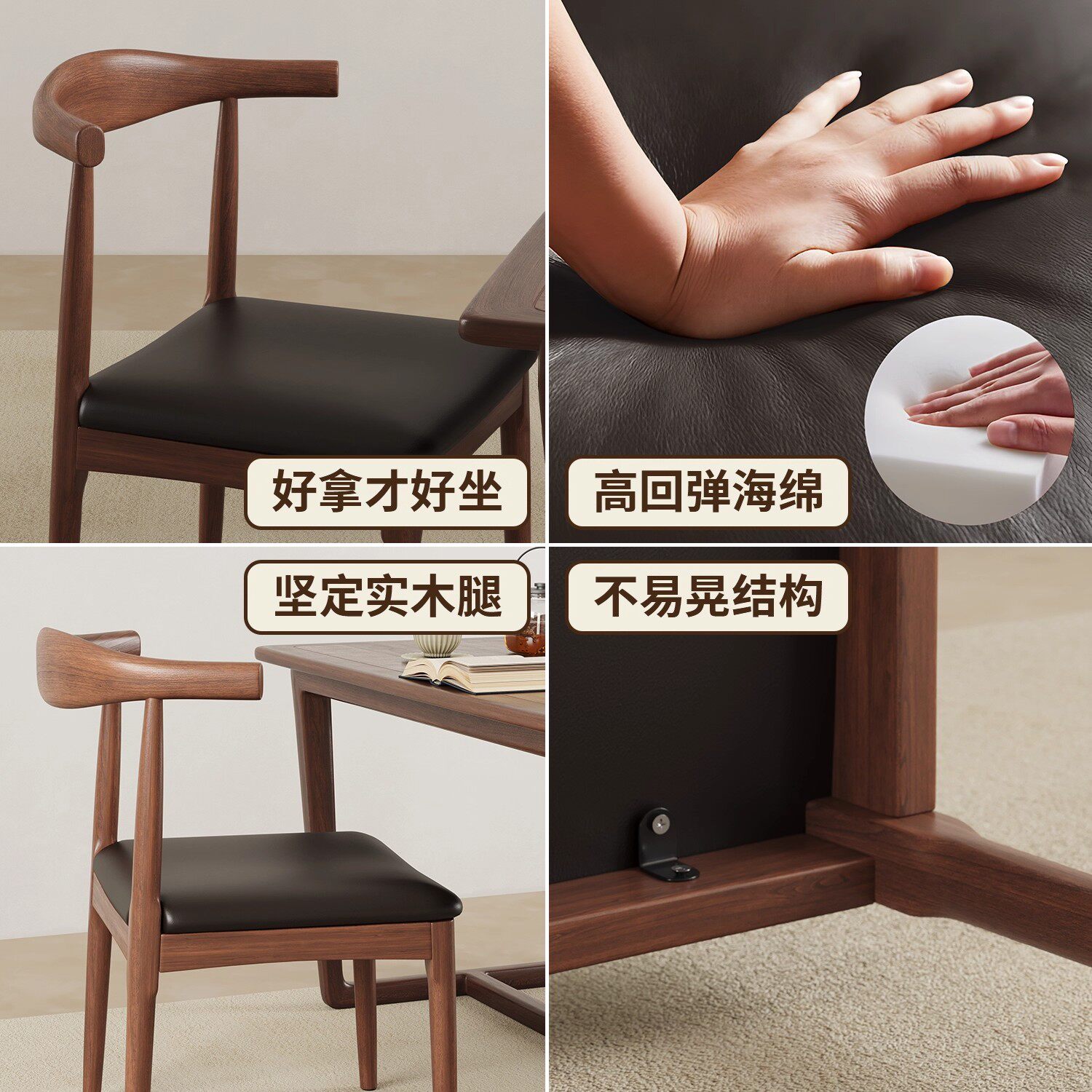 实木餐椅牛角椅餐厅饭店奶茶店办公室餐馆小吃店商用椅子靠背椅