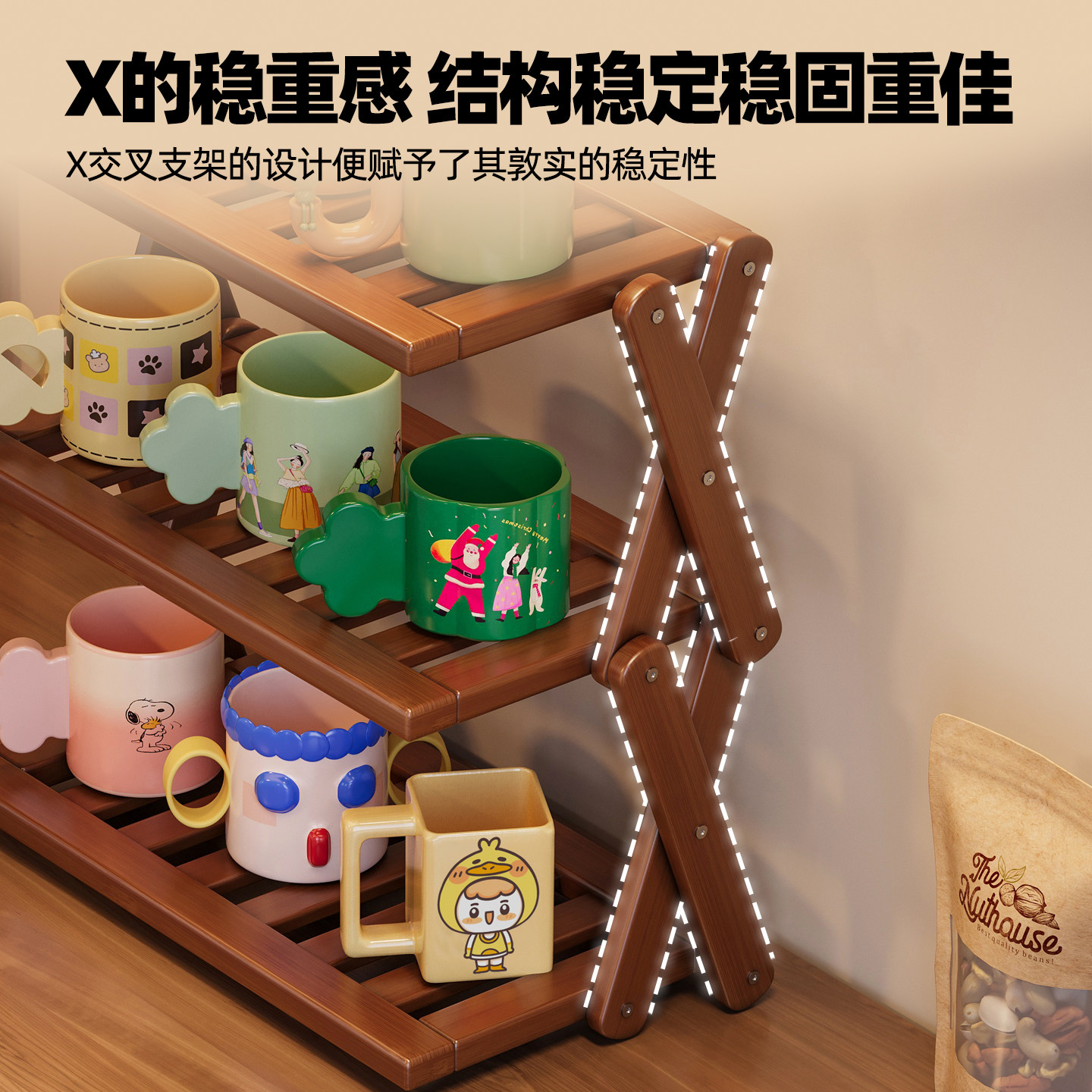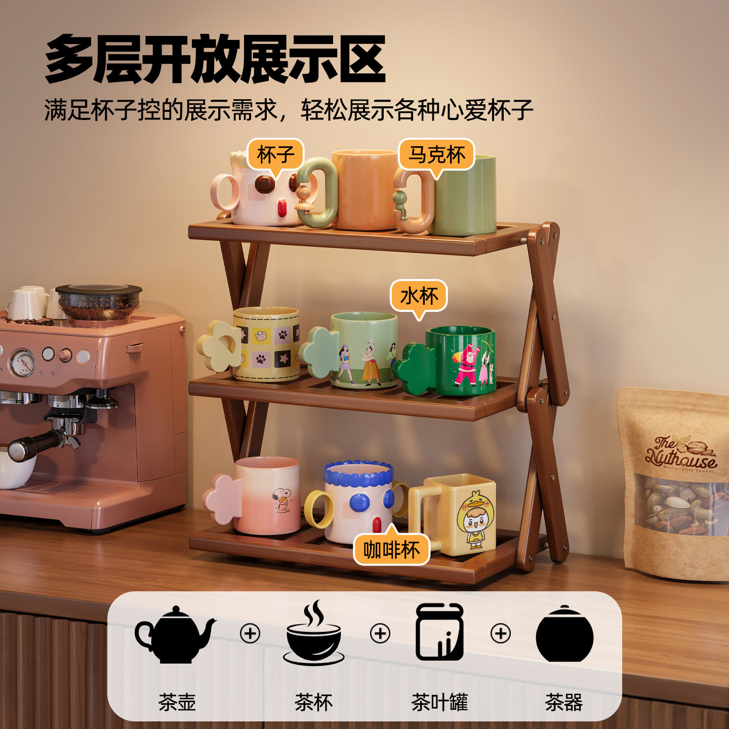 桌面杯架收纳置物架餐桌台面水杯马克杯展示架多层桌上小型储物架